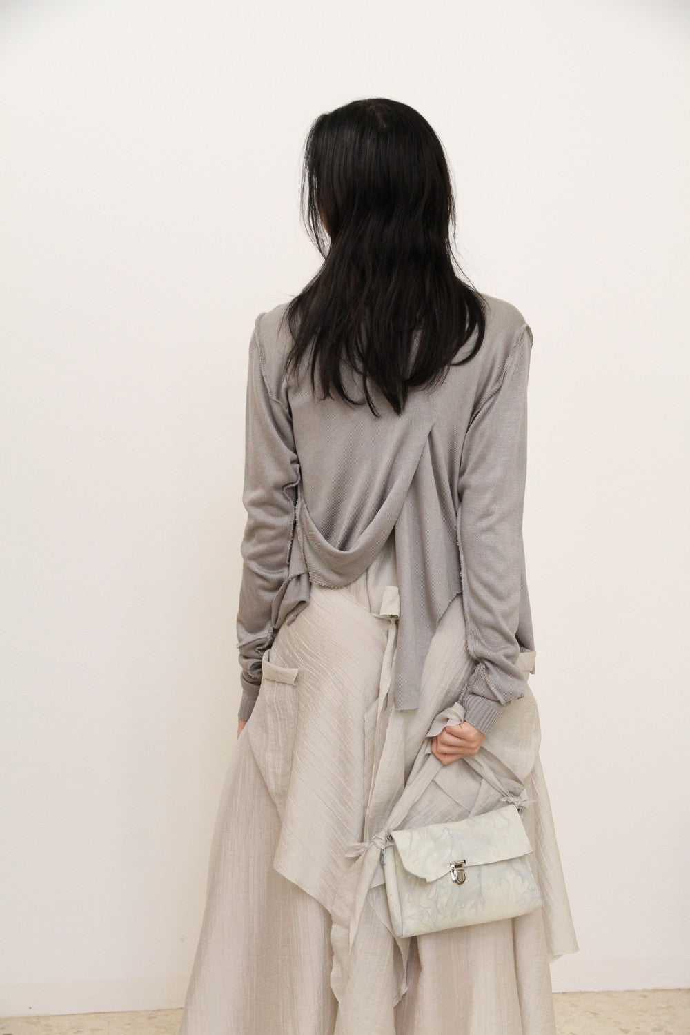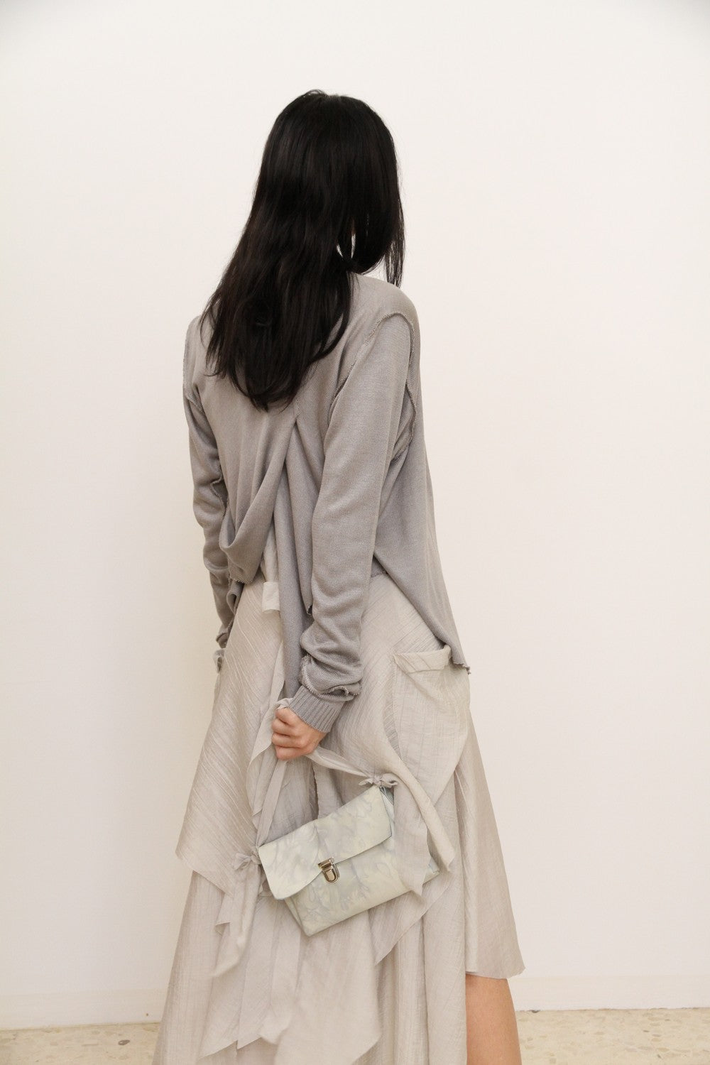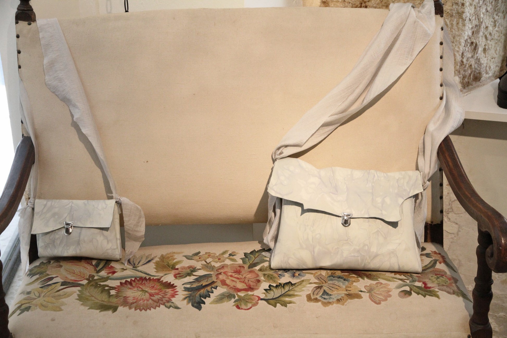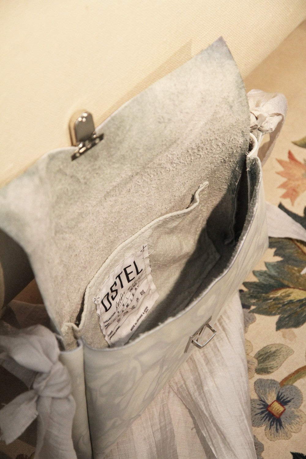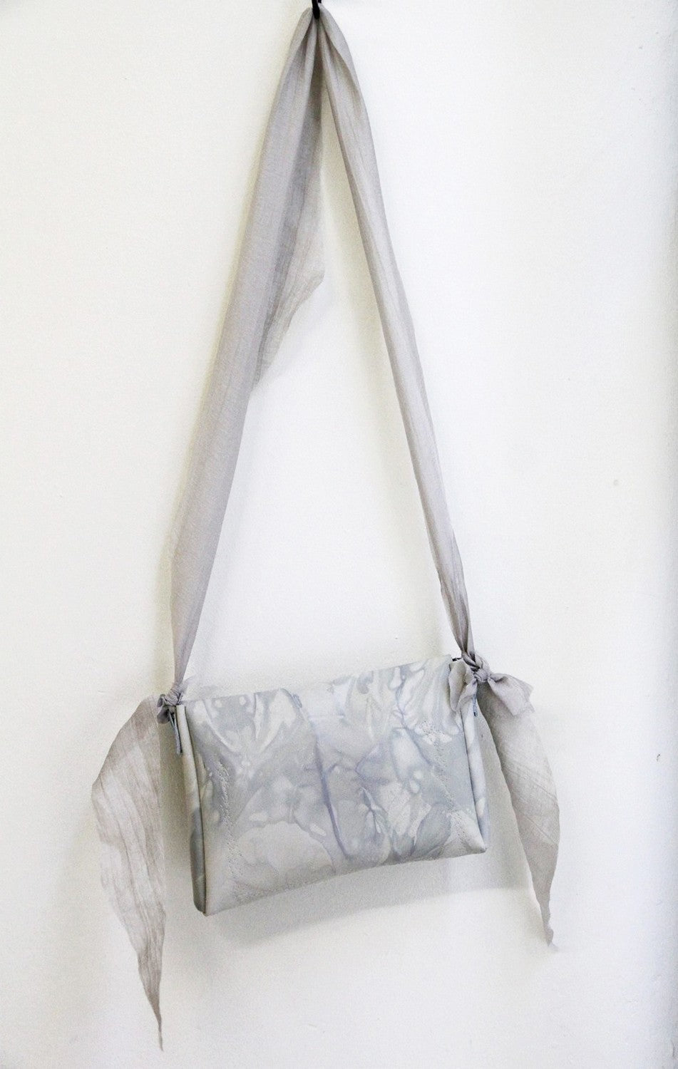 Bolso de piel sintética teñida de forma natural (vegana), con cierre metálico y cinta de viscosa.