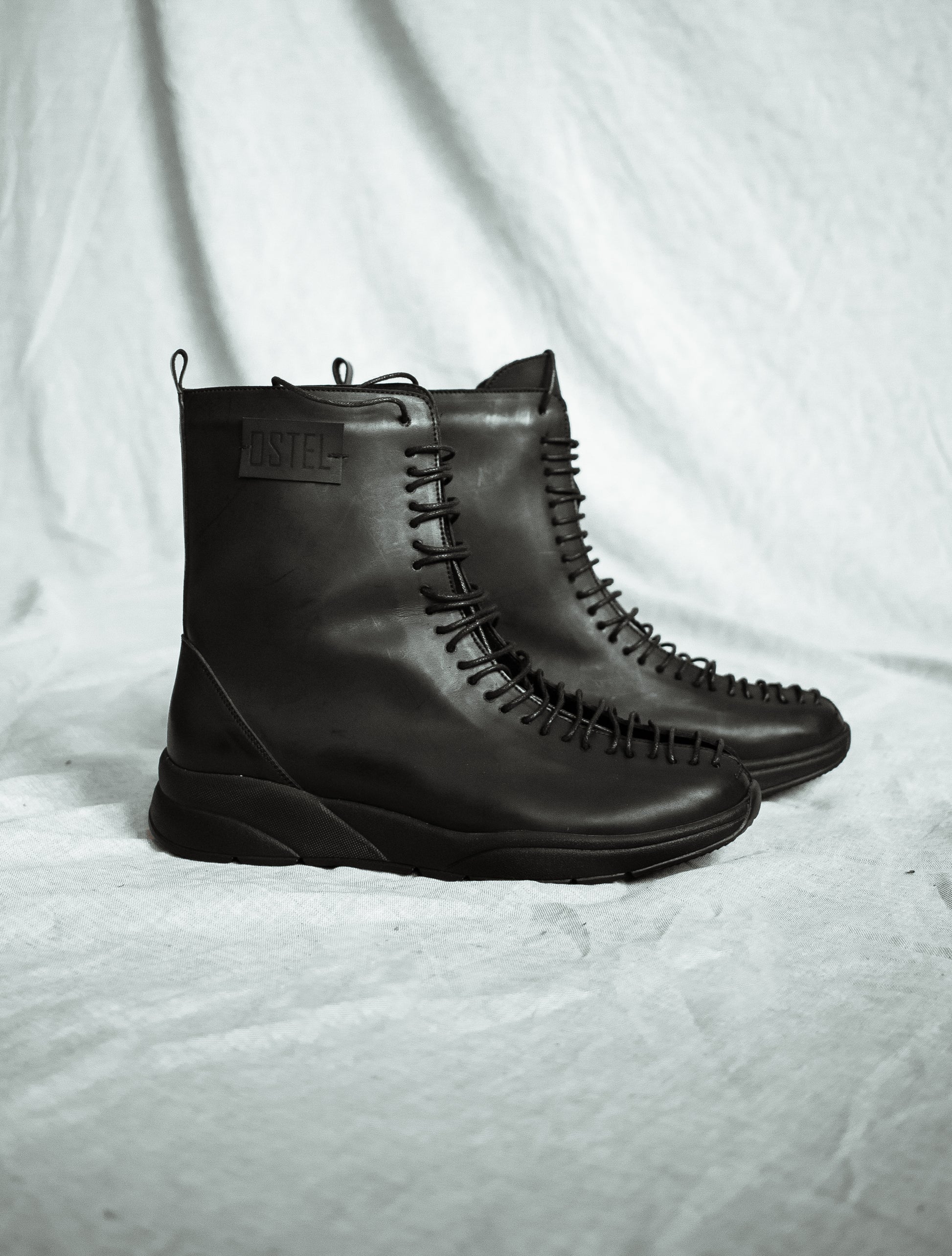 Zapatillas altas Avantgarde con cordones. Costura en el talón. Forro: lana fina (se pueden fabricar sin forro de lana bajo pedido). Botas cálidas para otoño-invierno. El cuero de poliuretano (PU) es duradero y resistente a las heladas. Es ecológico, más ligero que el cuero, resistente al desgarro y a la abrasión. El cuero de poliuretano transmite mejor el aire que algunos materiales naturales gracias a su gran cantidad de poros. Unisex.