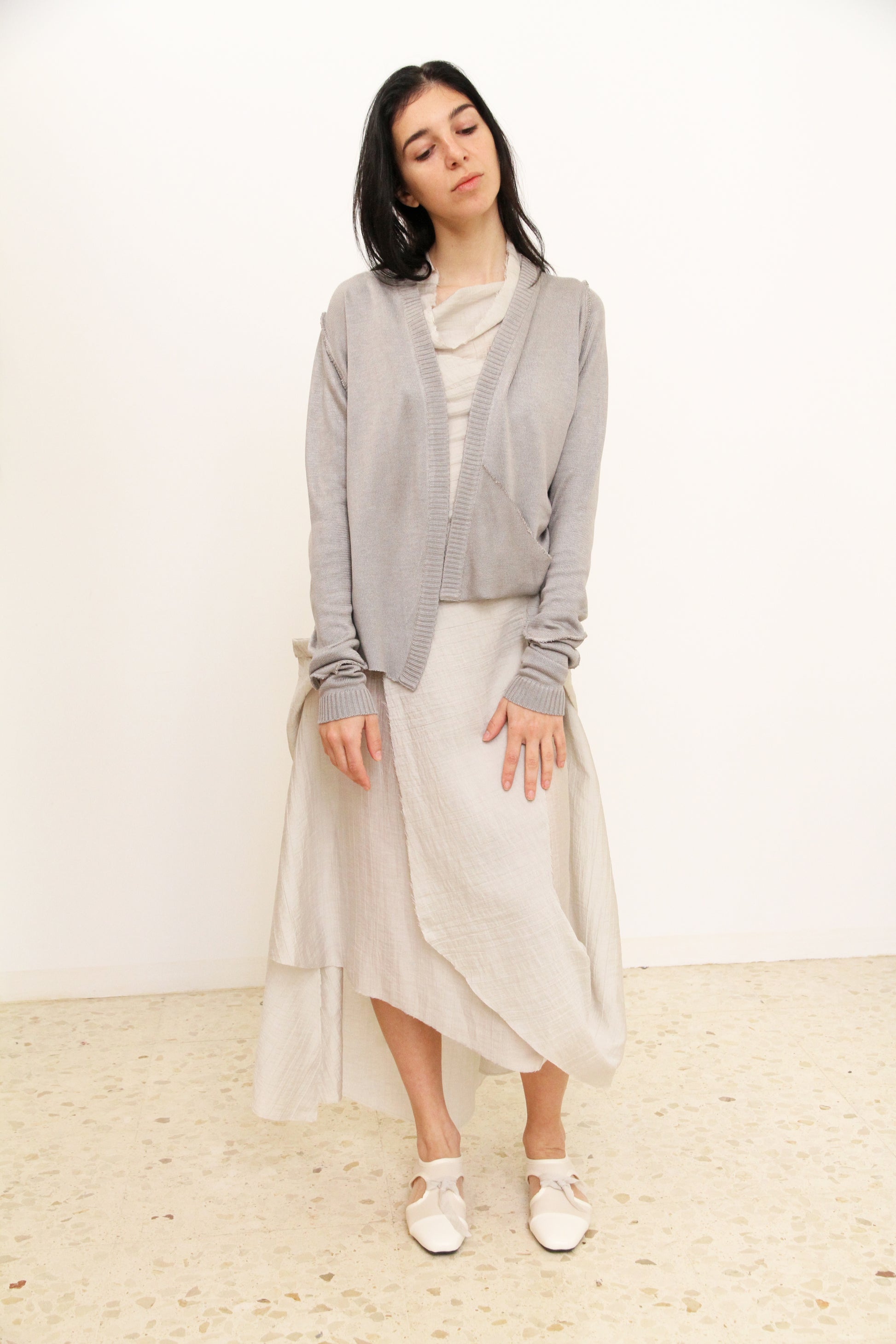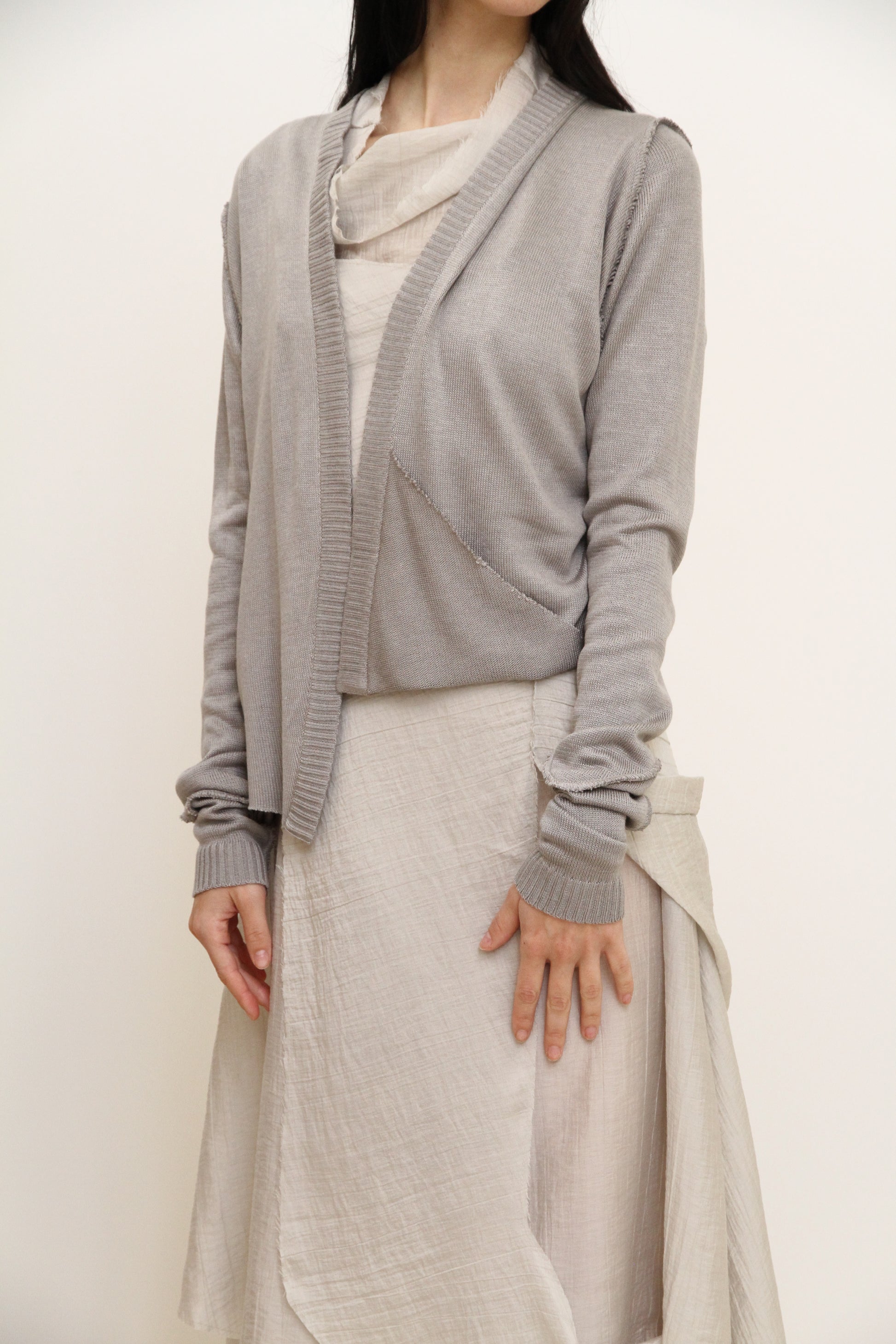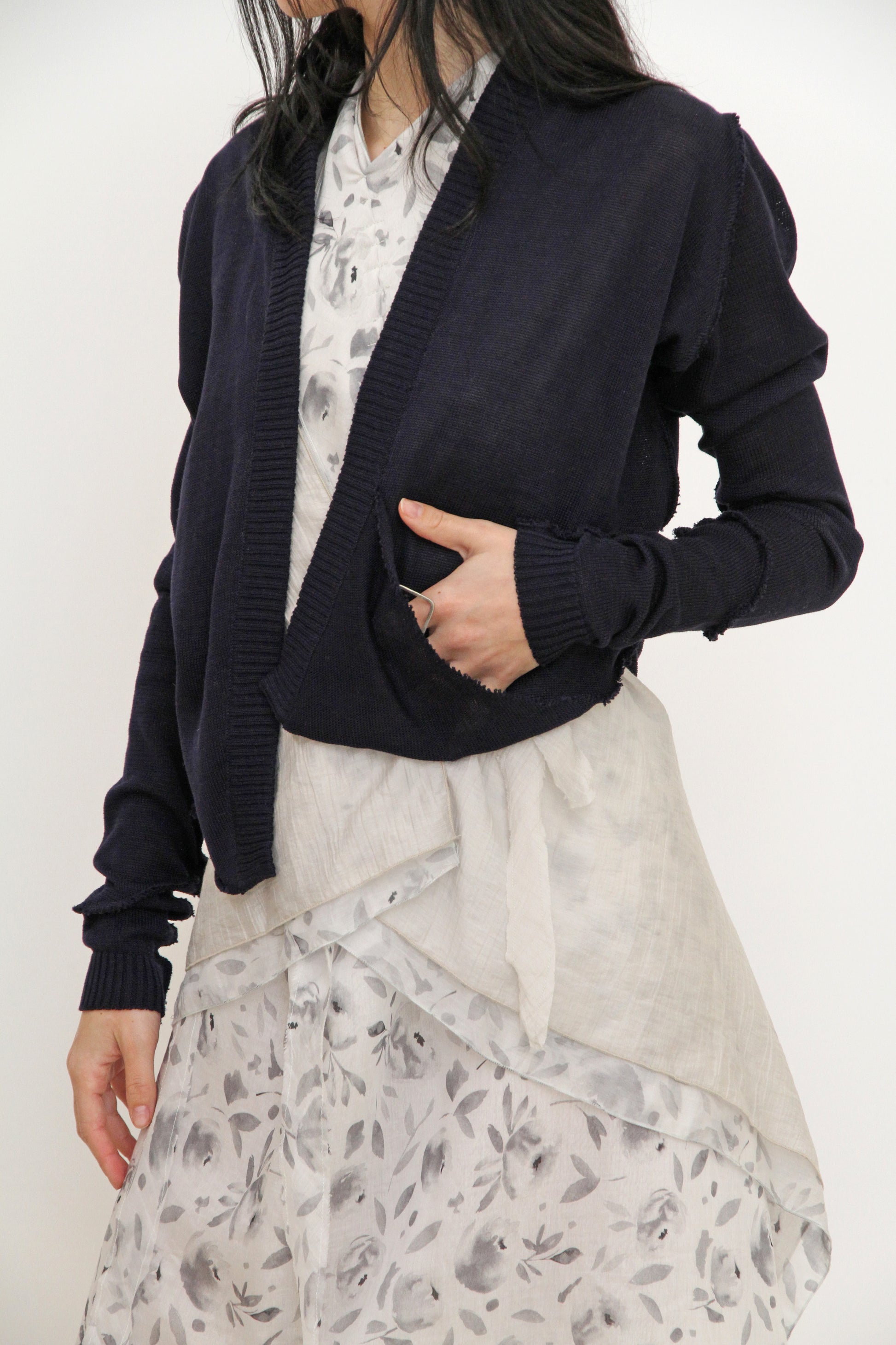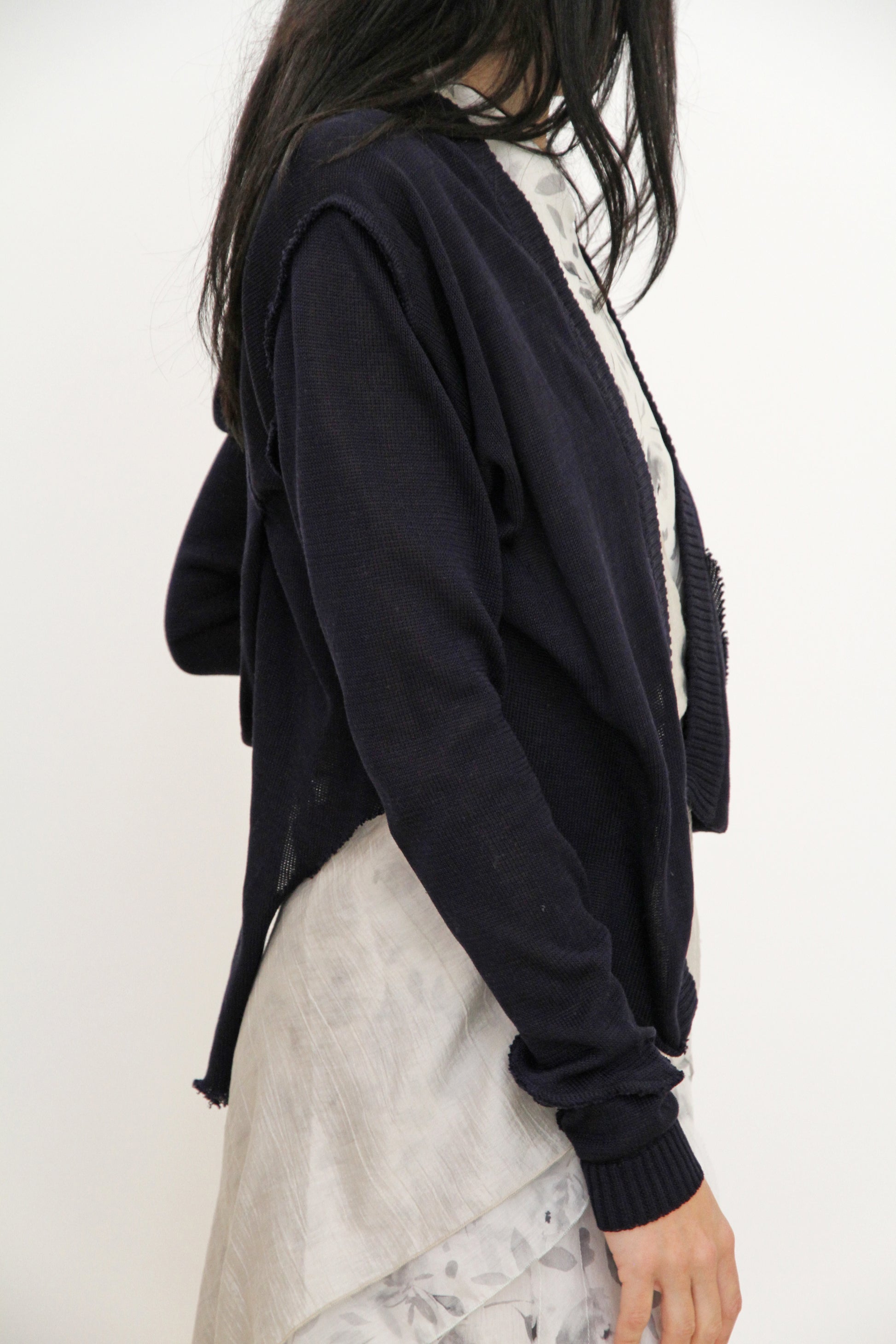 Cárdigan asimétrico con drapeado y un bolsillo.