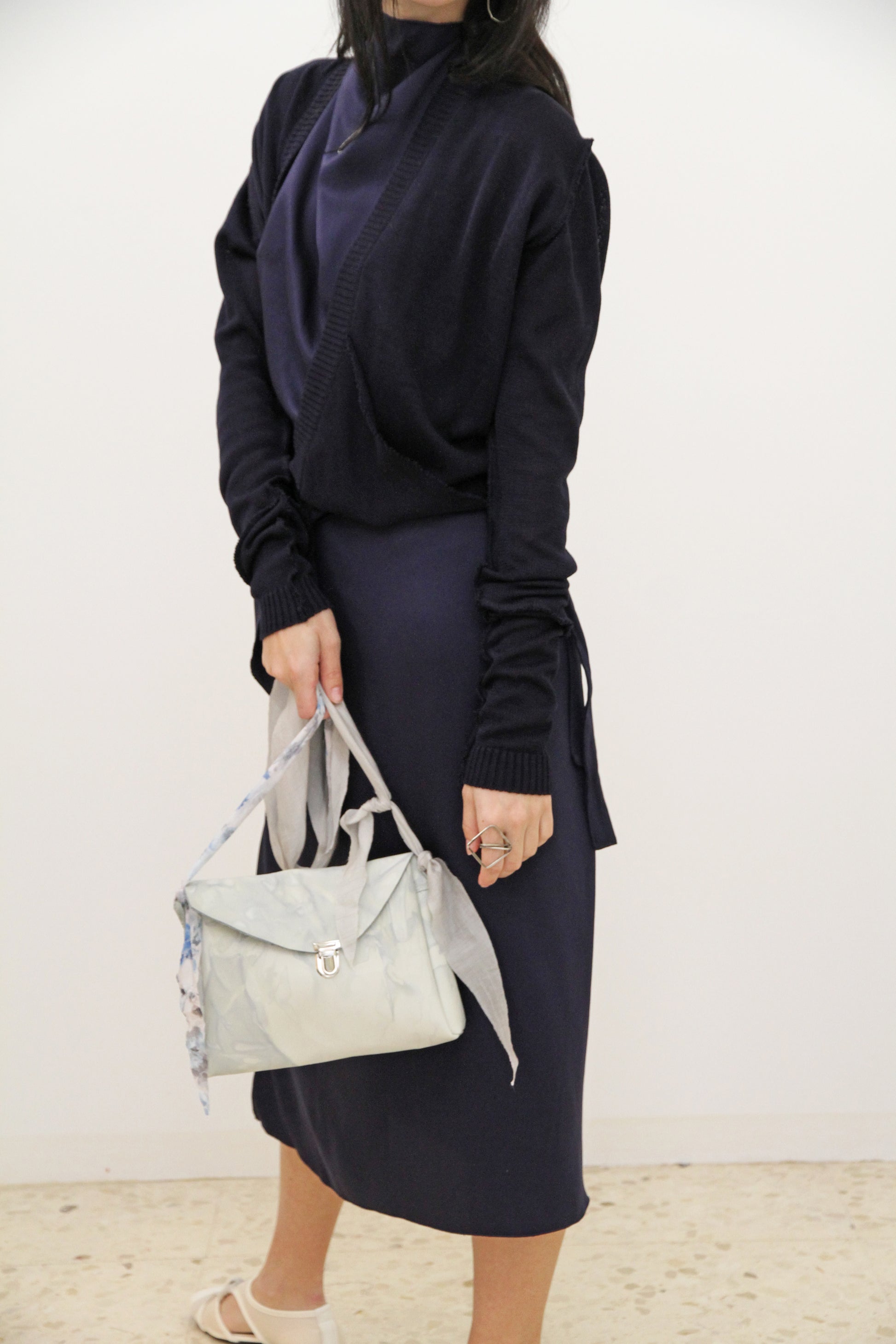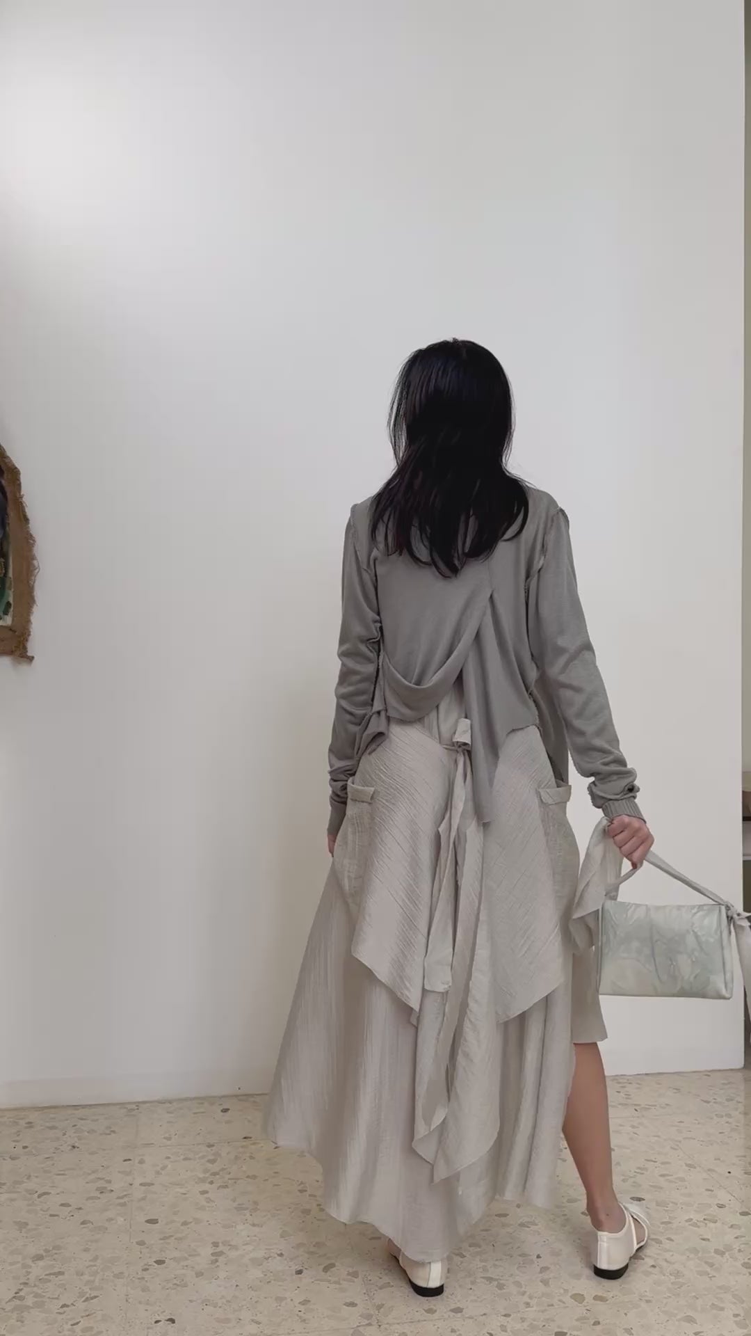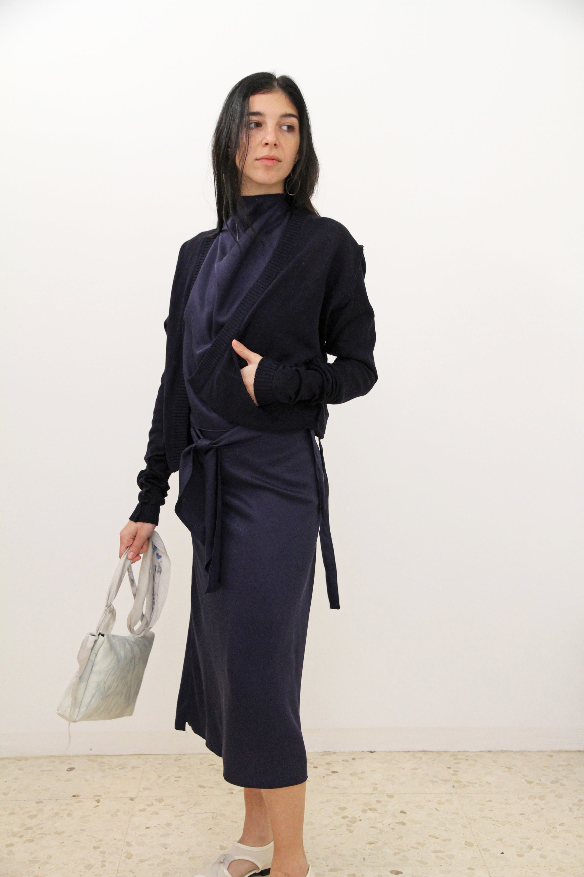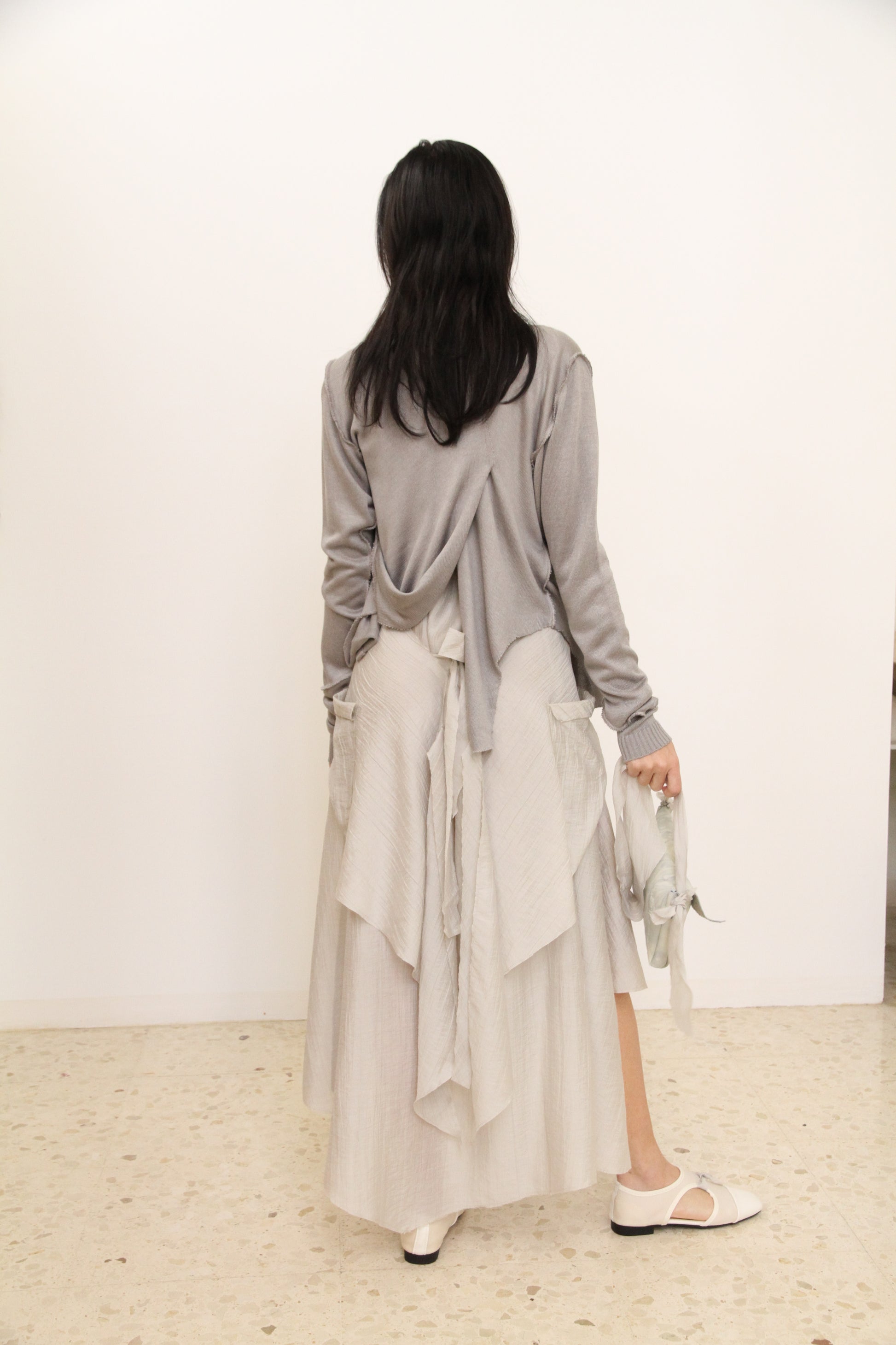 Cárdigan asimétrico con drapeado y un bolsillo.
