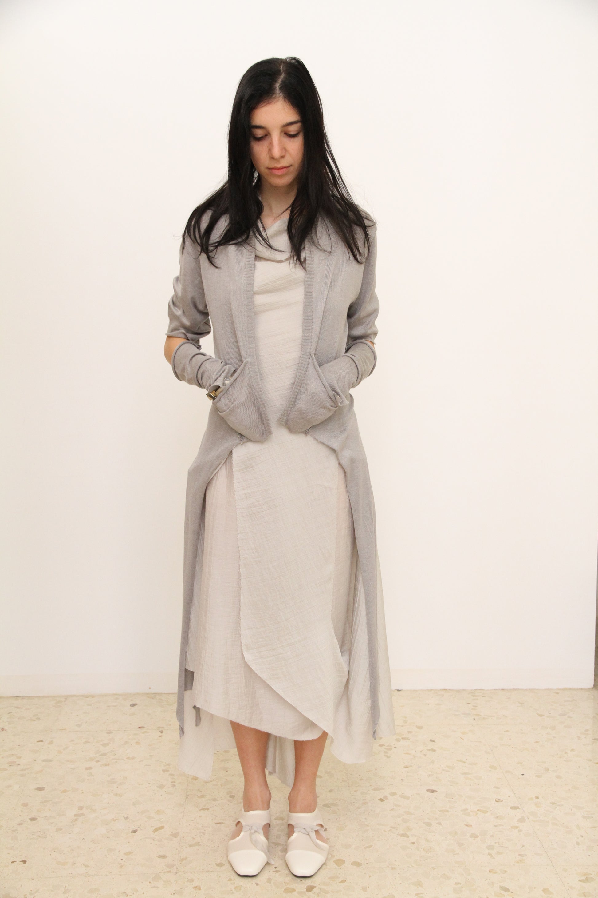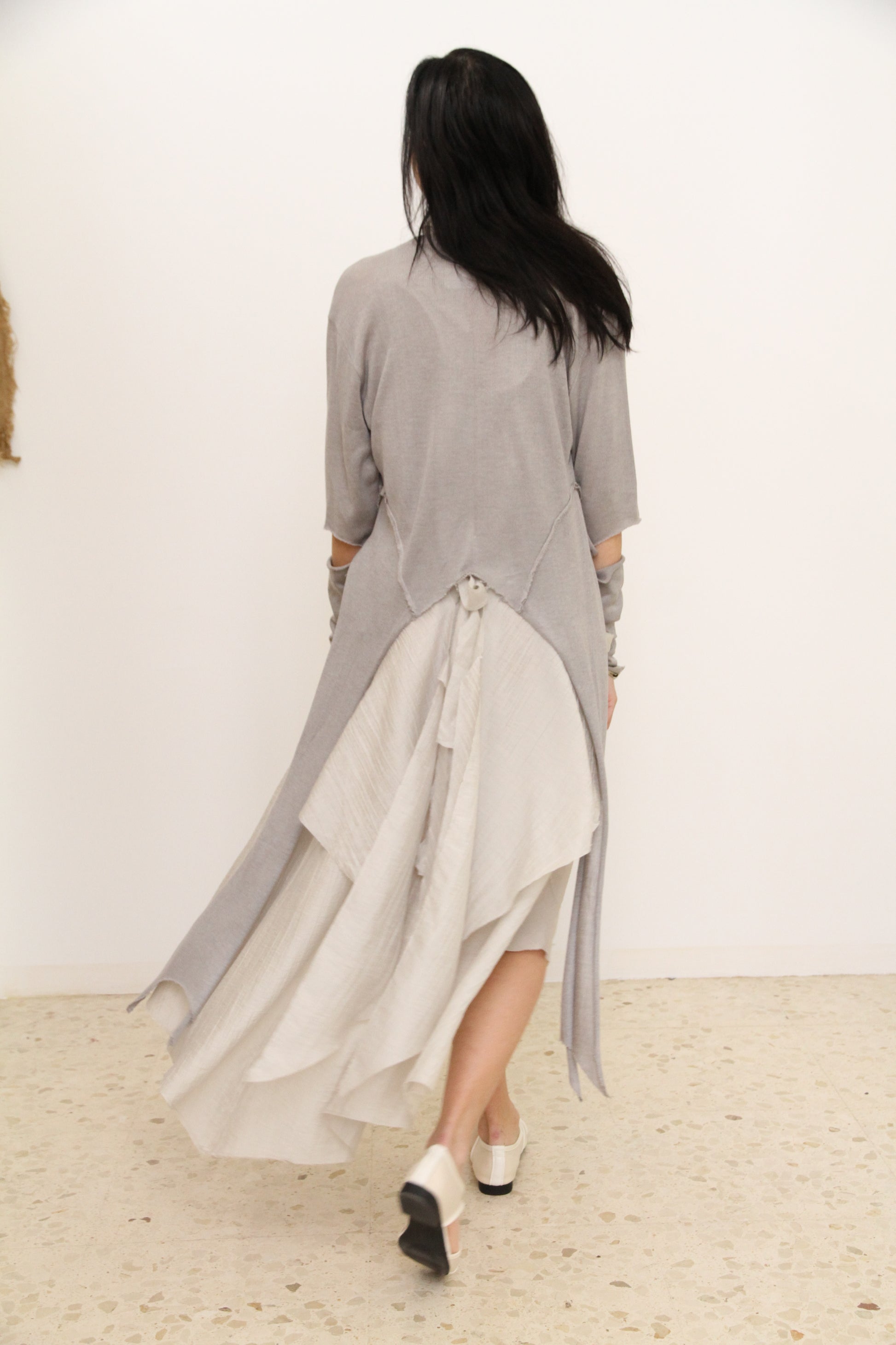 Cárdigan vanguardista con mangas cortadas y dos bolsillos.