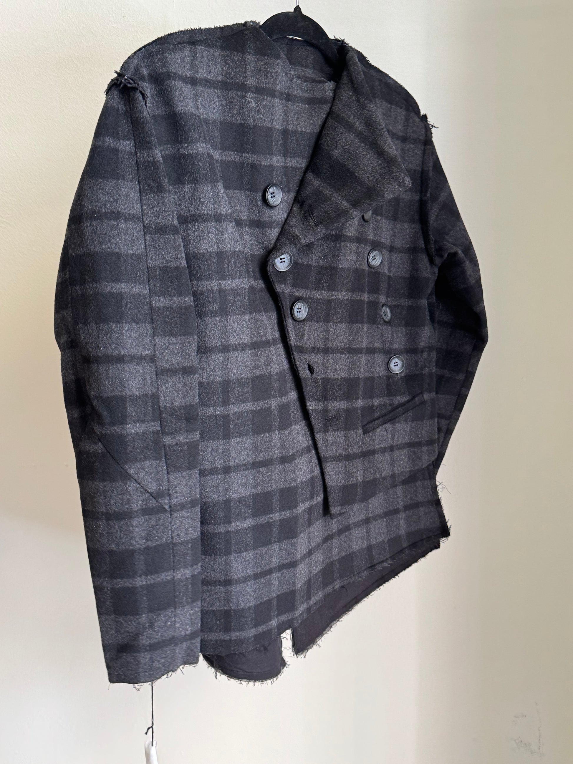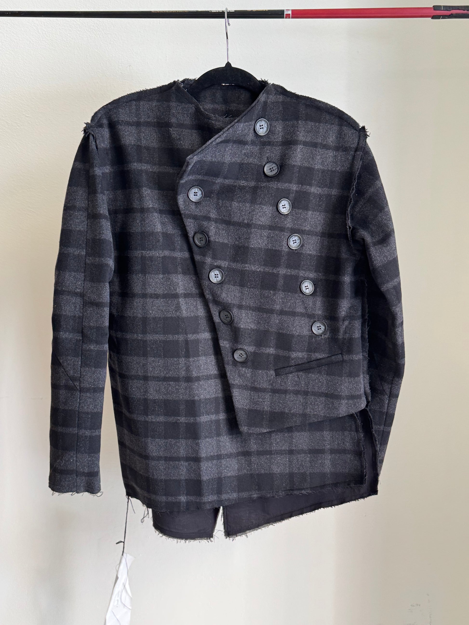 Chaqueta-abrigo asimétrico con detalles en hilera. Unisex.