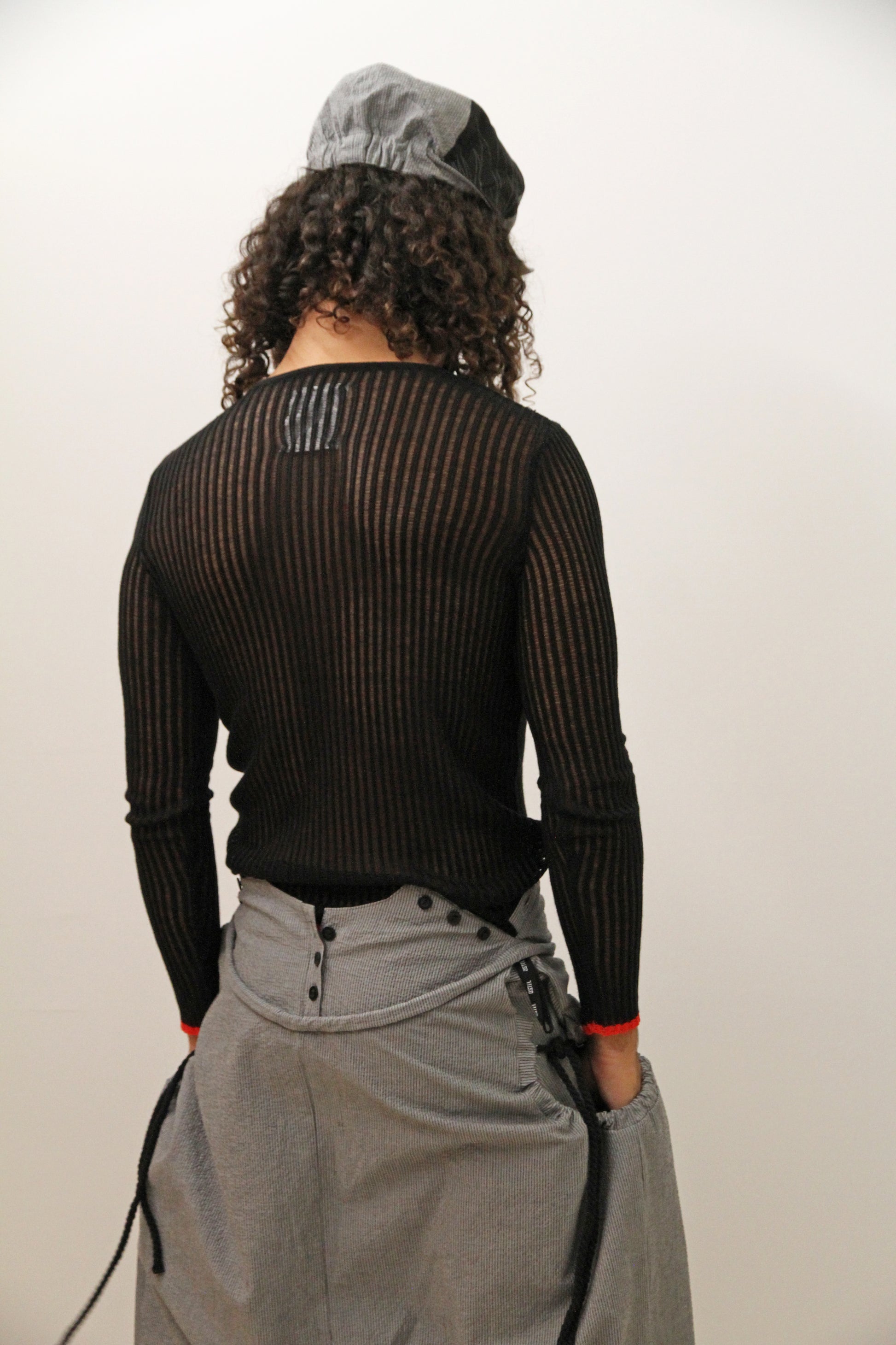 La parte trasera está cosida con una banda elástica para su fijación.