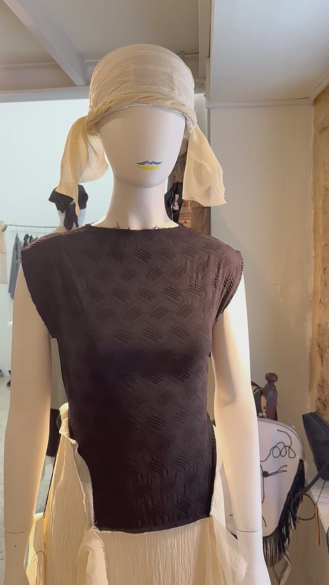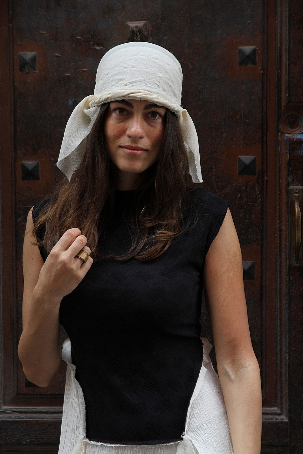 El sombrero está hecho de yute y algodón. Todo está cosido a mano.