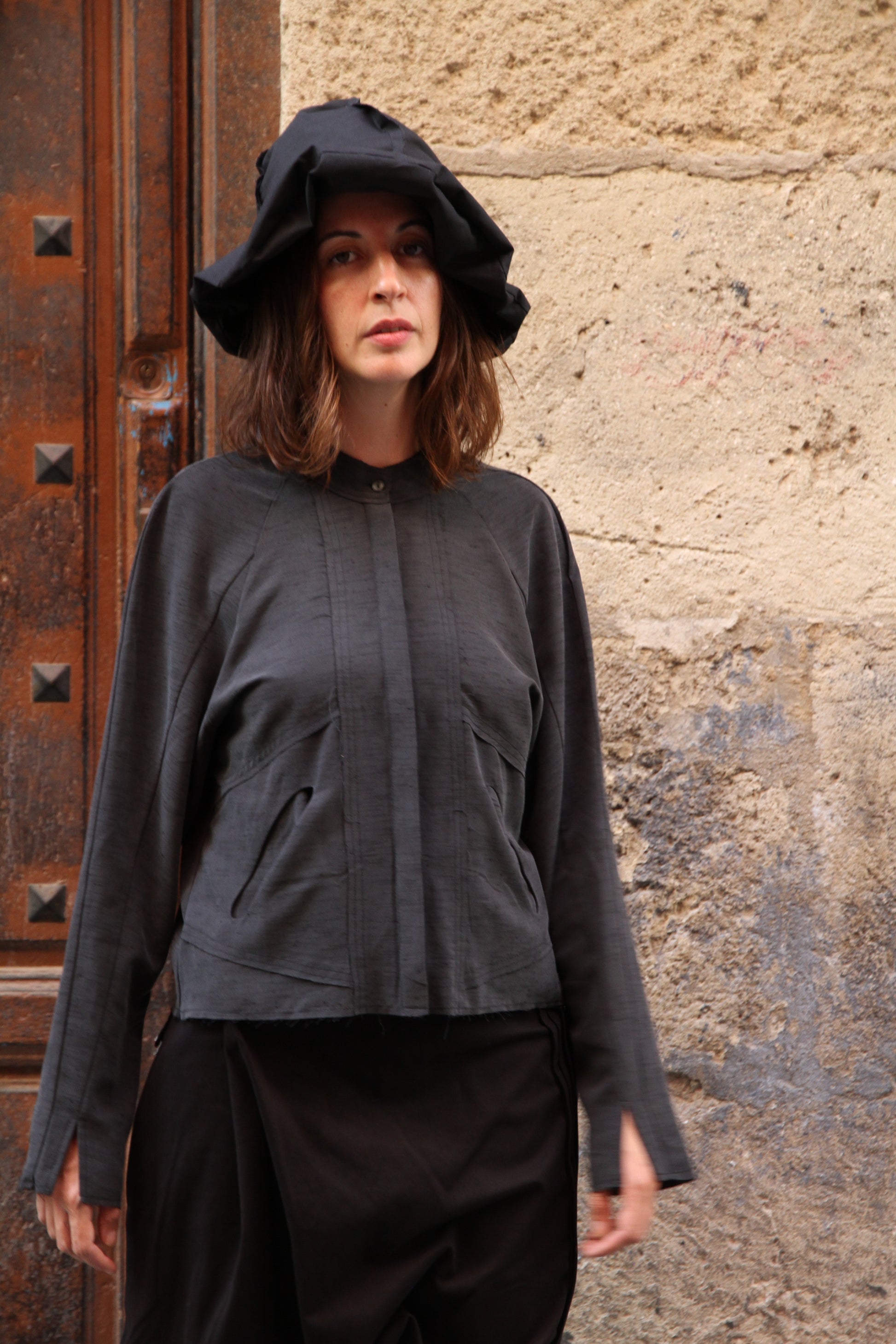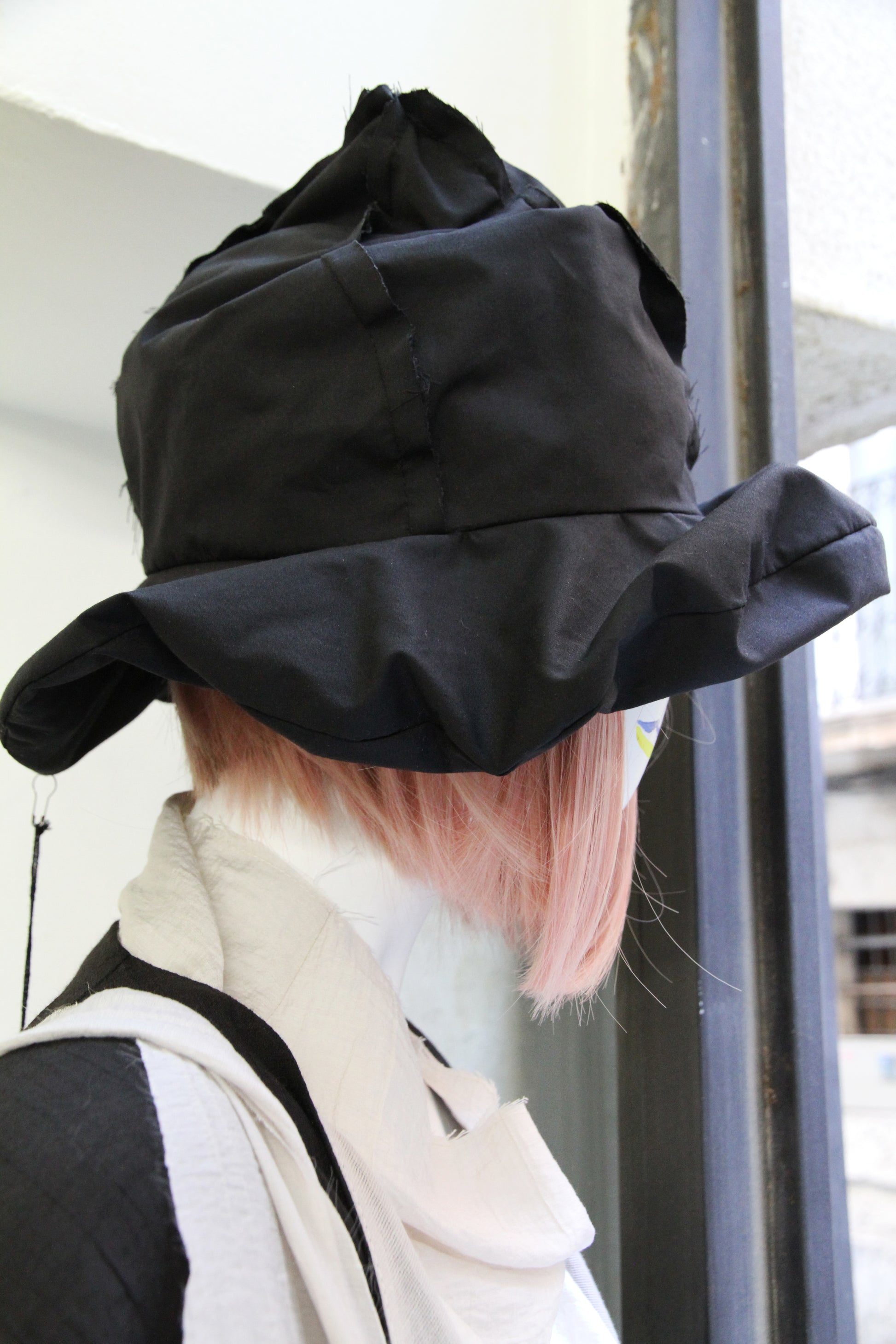 Sombrero de algodón con puntada en espiral y alas anchas.