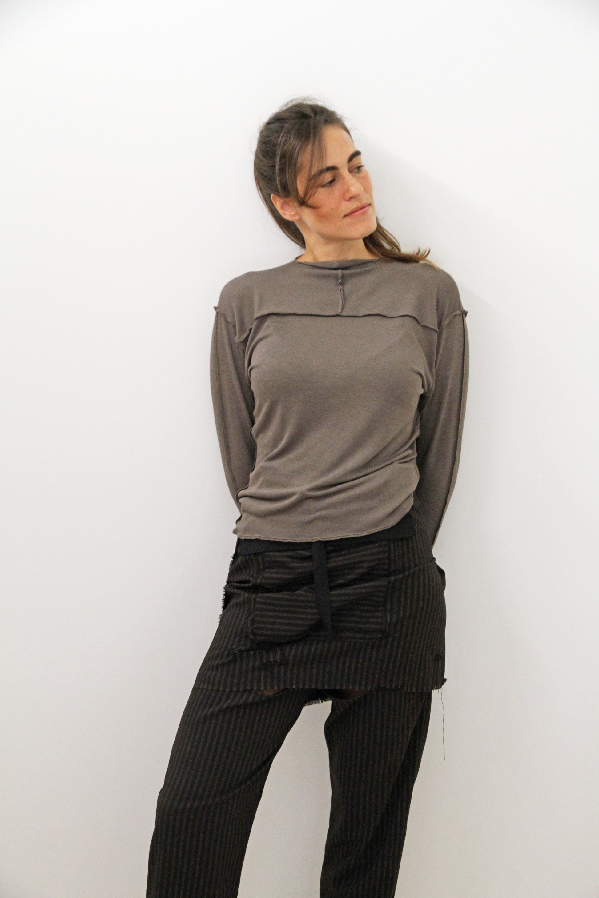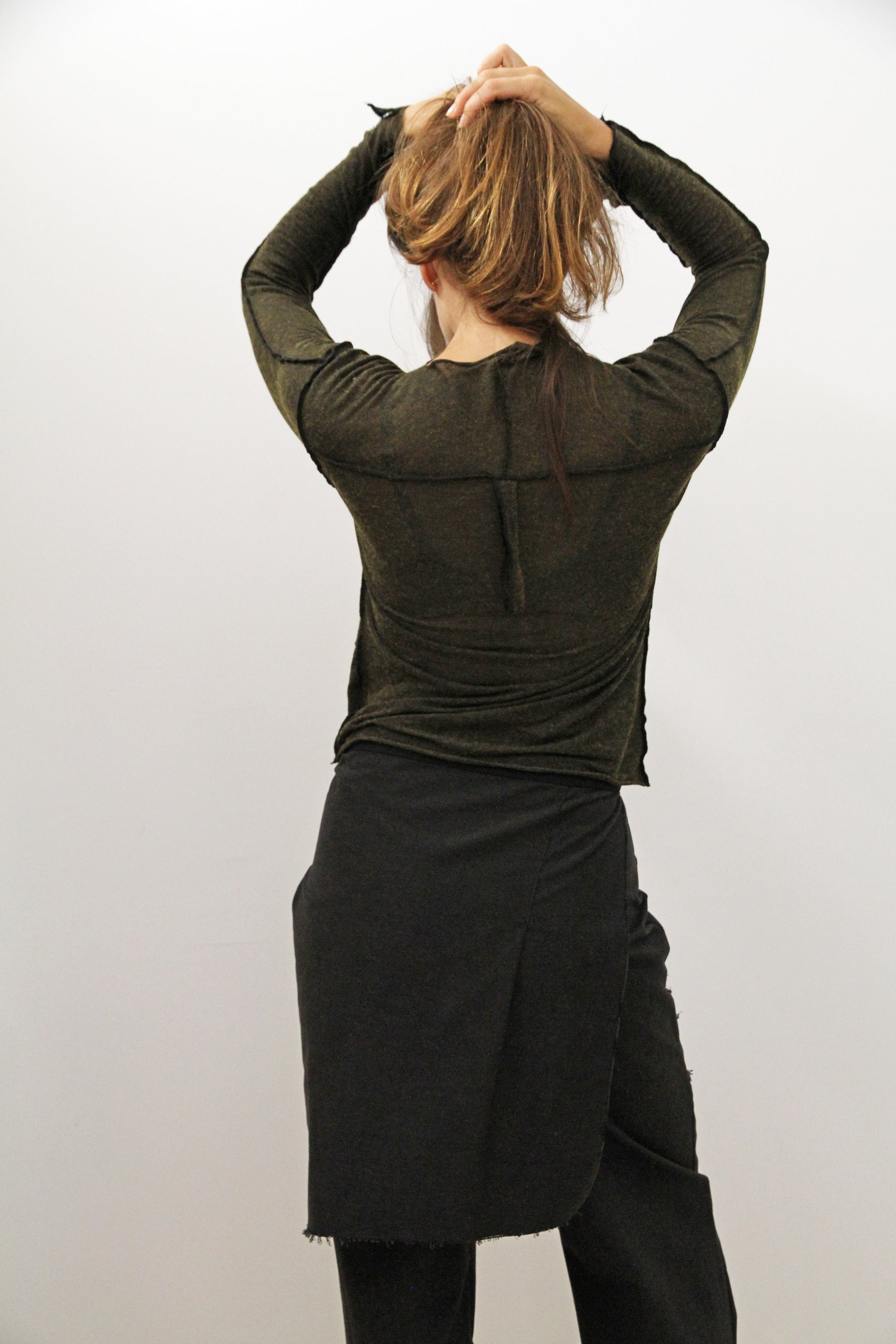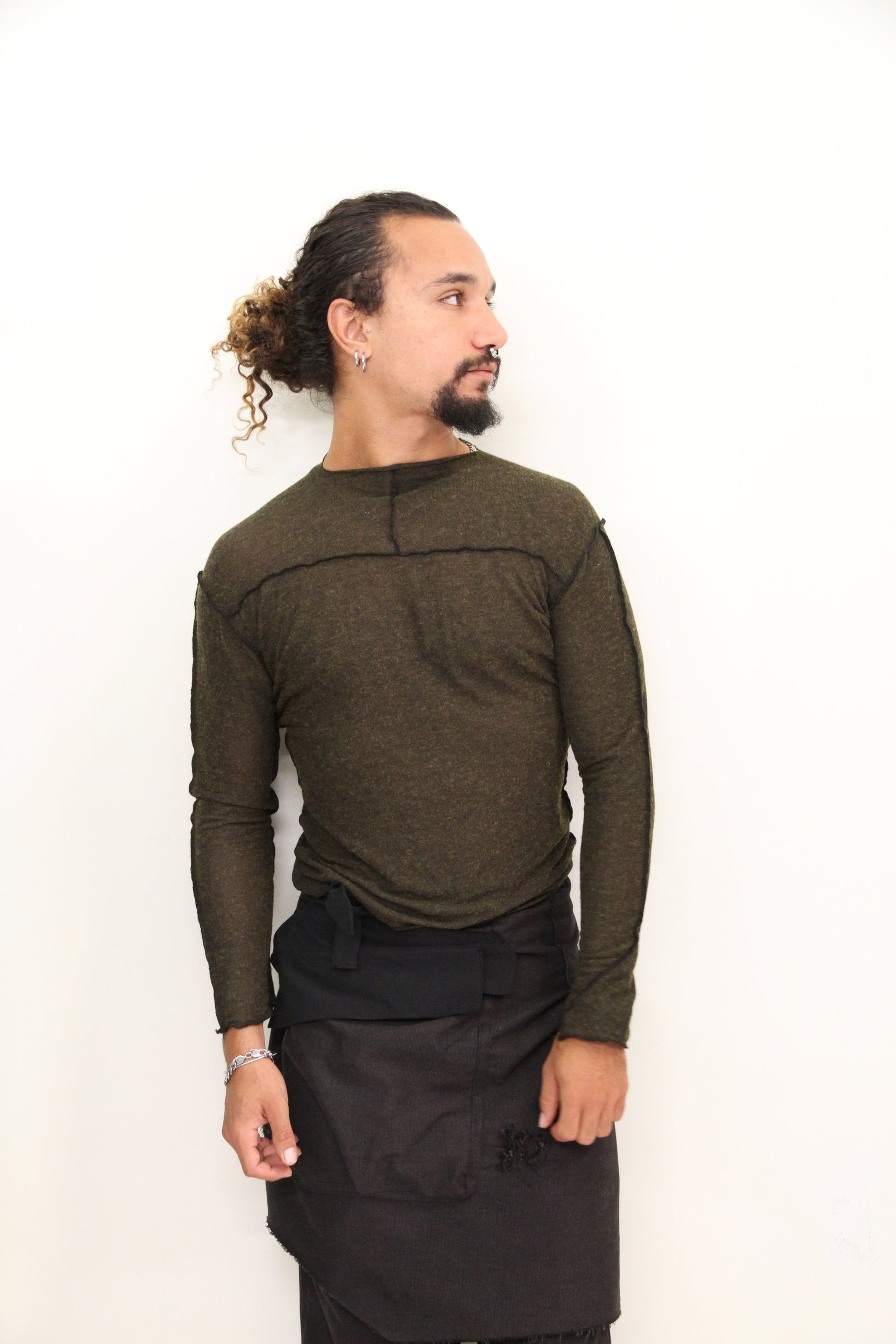 Talla grande. Largo de la parte superior: 60 cm desde los hombros, con un contorno de pecho máximo de 120 cm y largo de manga: 59 cm.