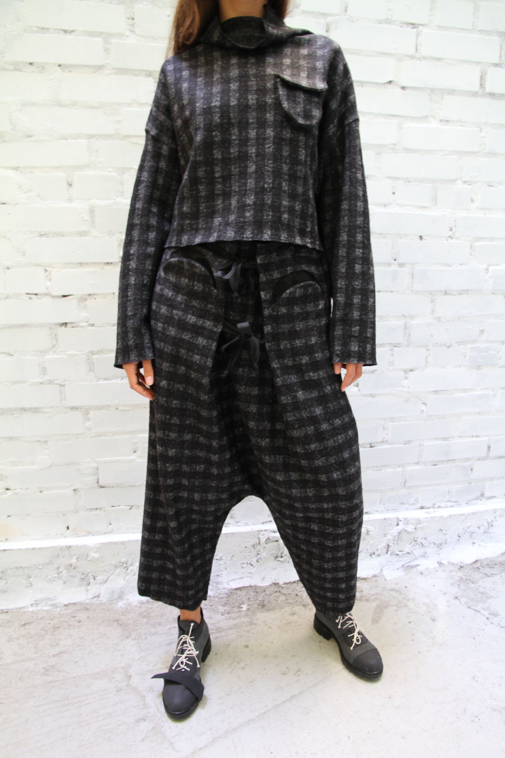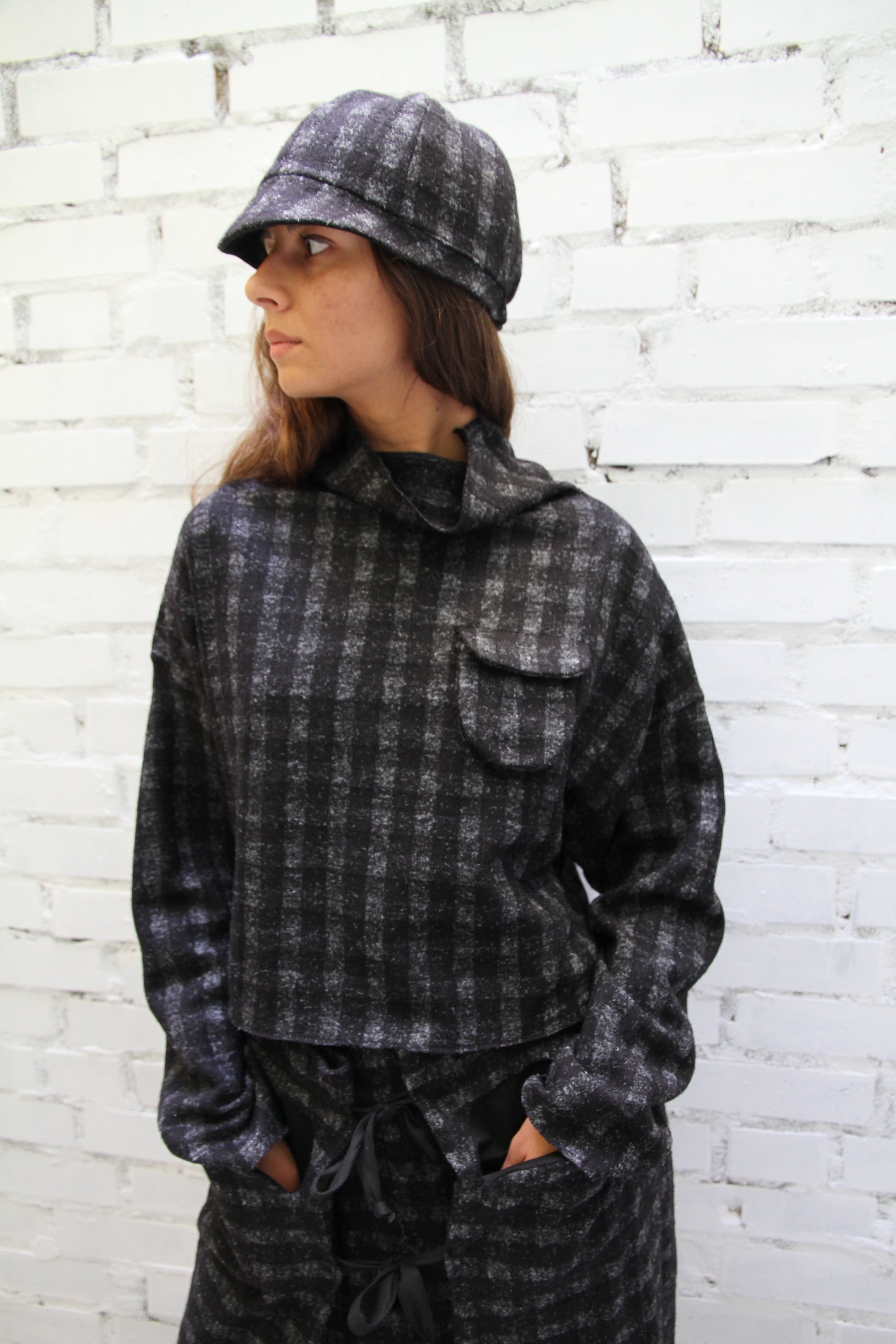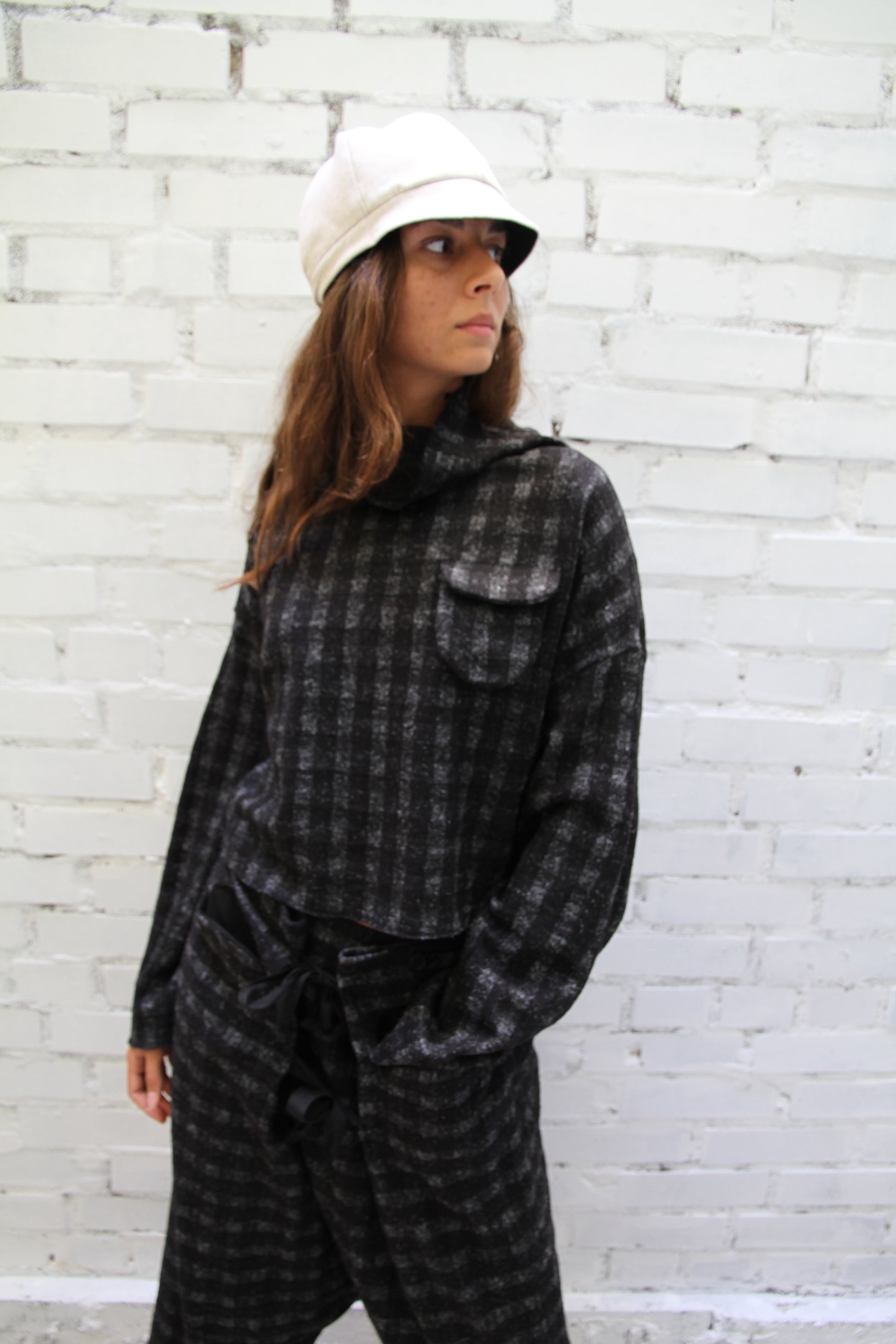 Jersey de manga larga y cuello alto con un pequeño bolsillo en la parte delantera y espalda larga.