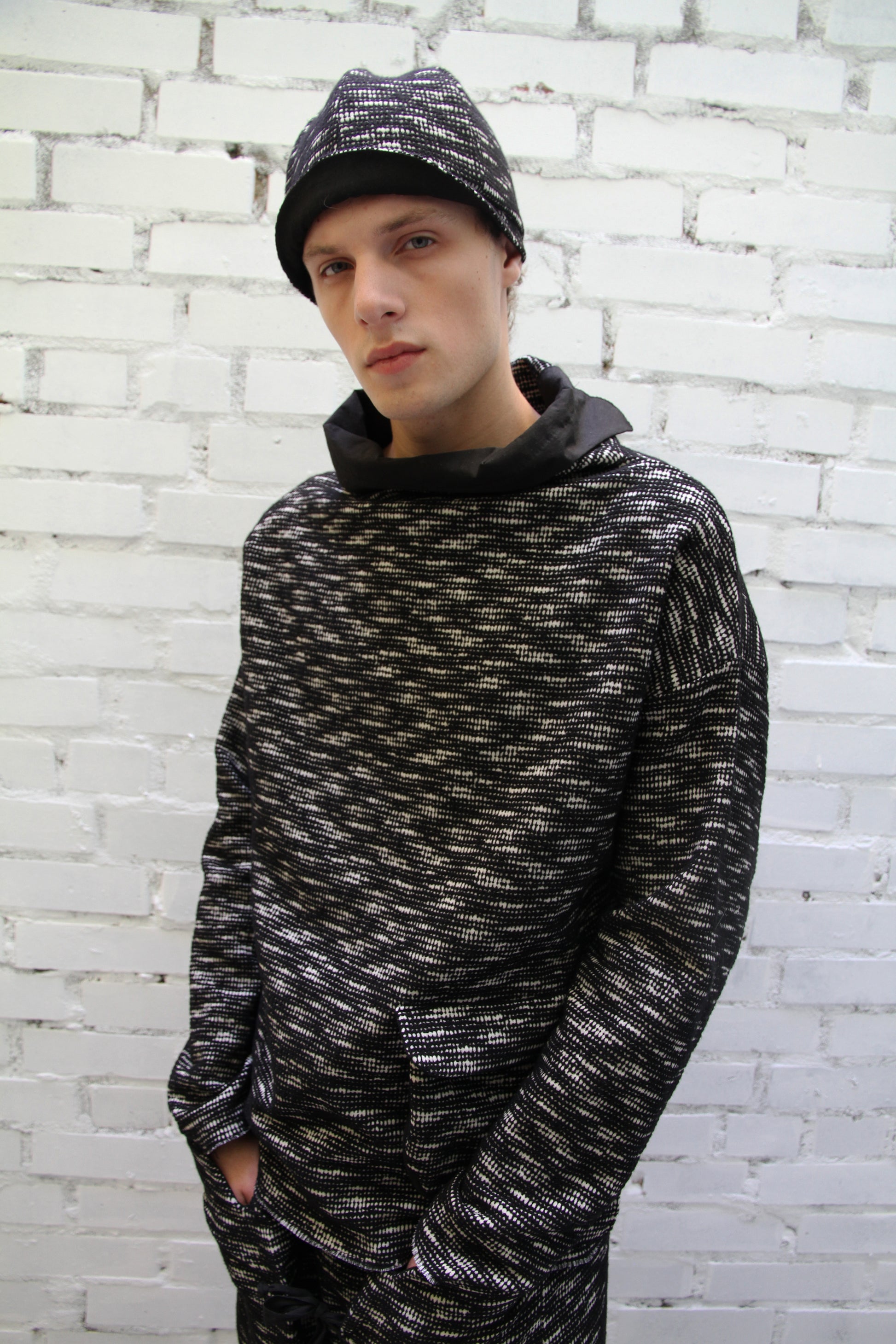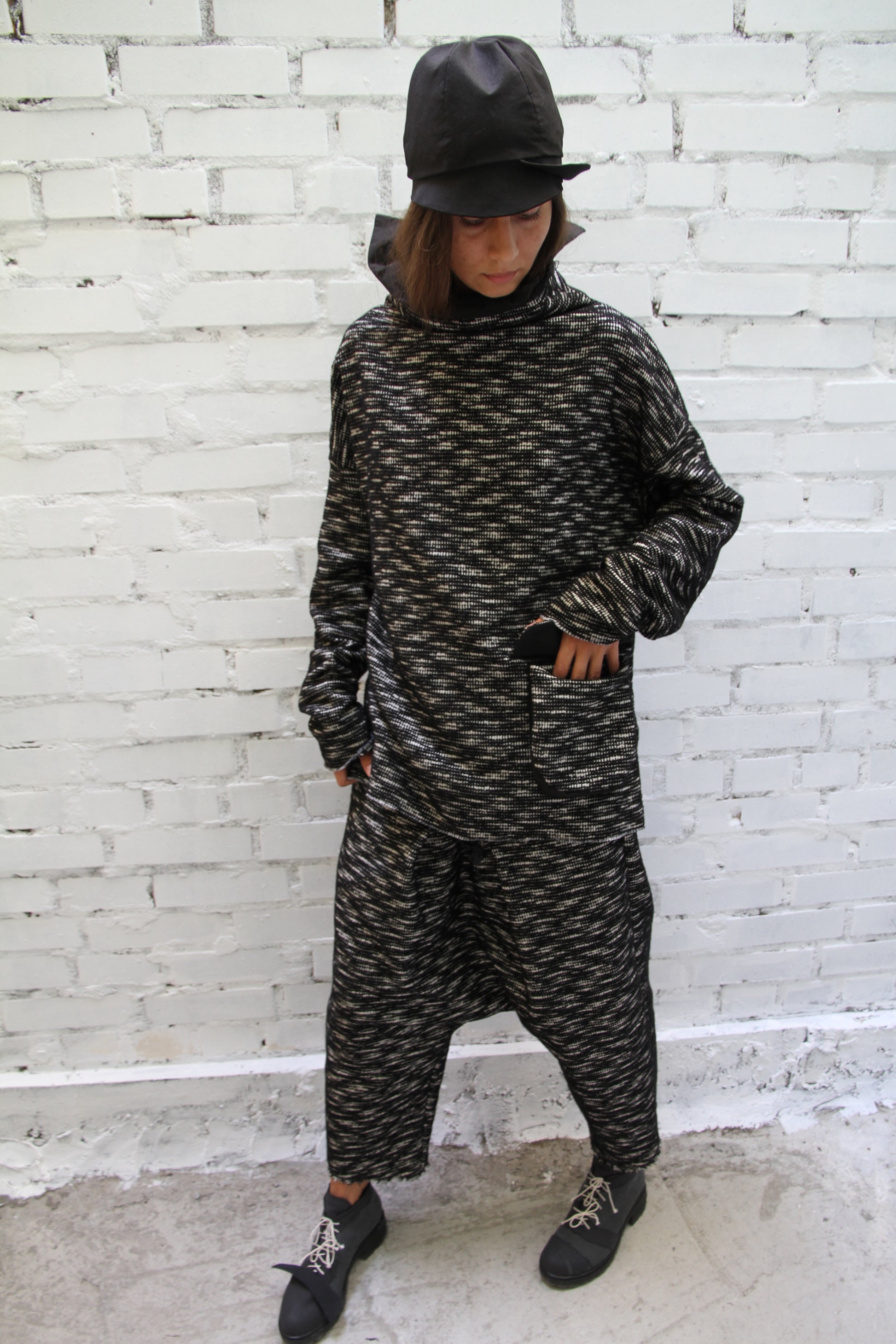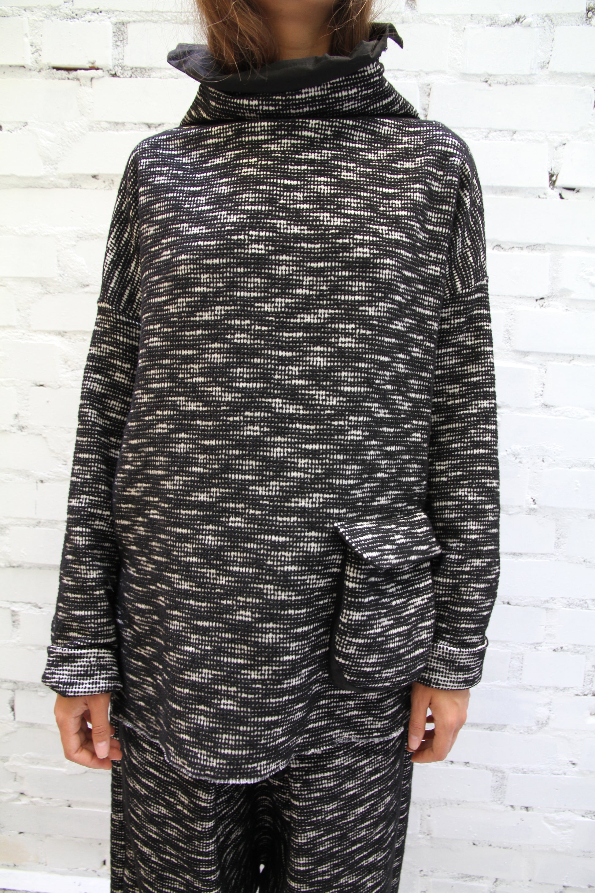 Jersey unisex de manga larga, cuello alto, corte lateral y un bolsillo grande en la parte delantera.