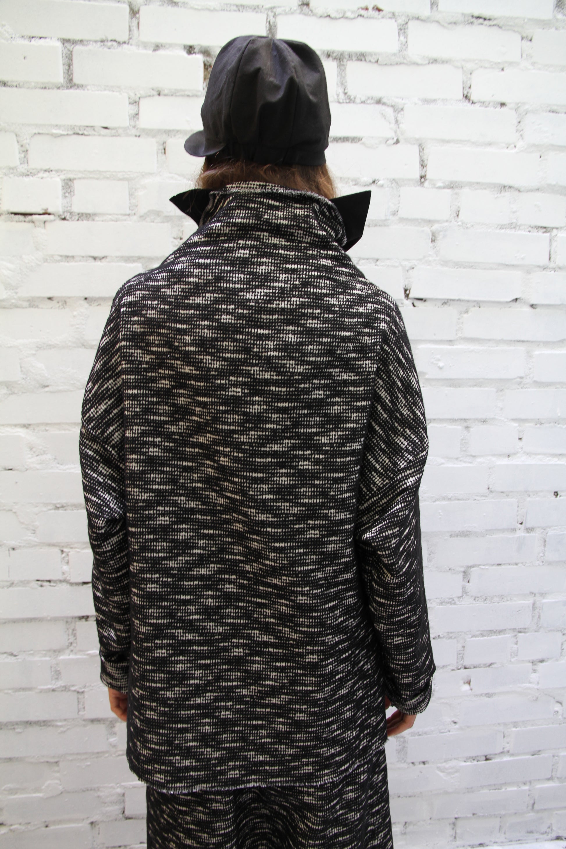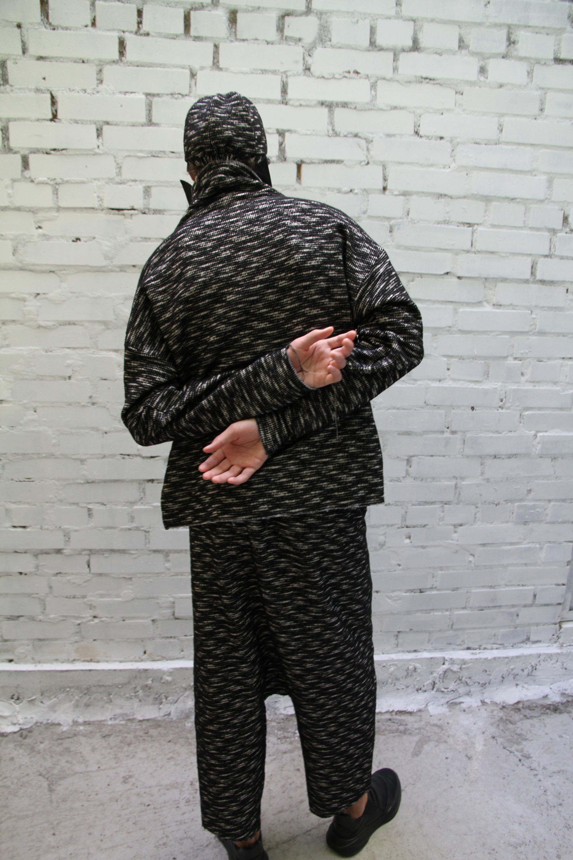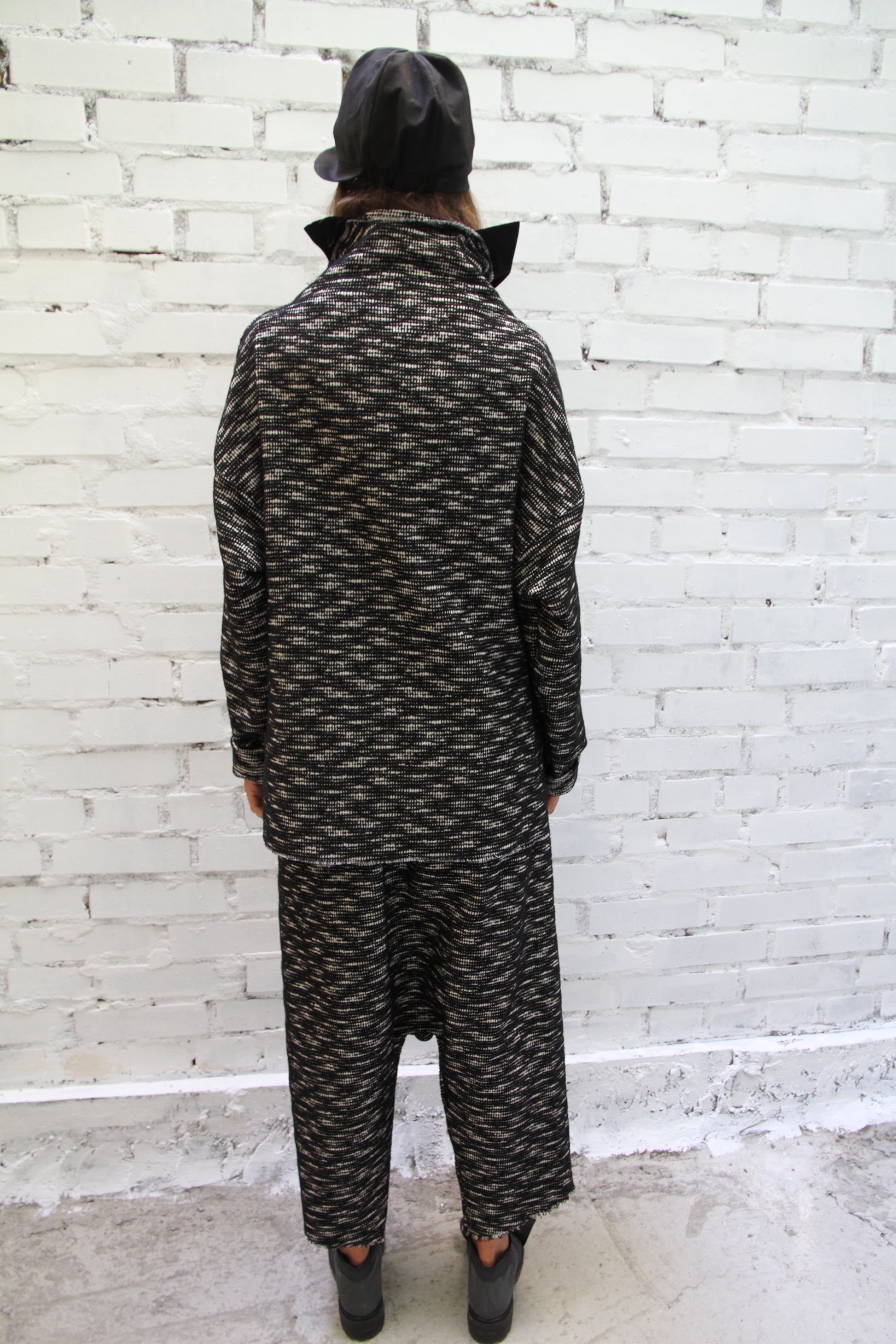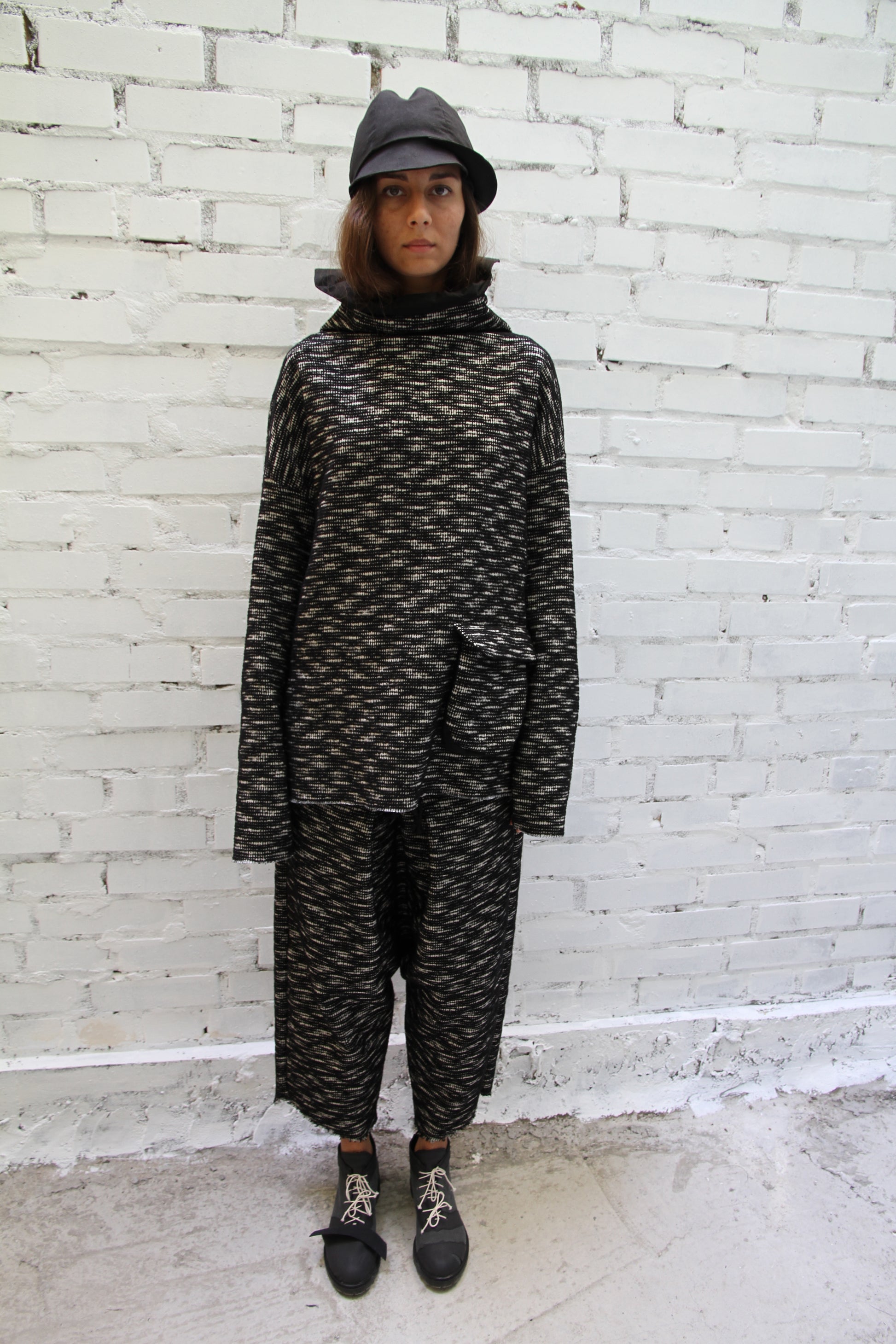 Jersey unisex de manga larga, cuello alto, corte lateral y un bolsillo grande en la parte delantera.