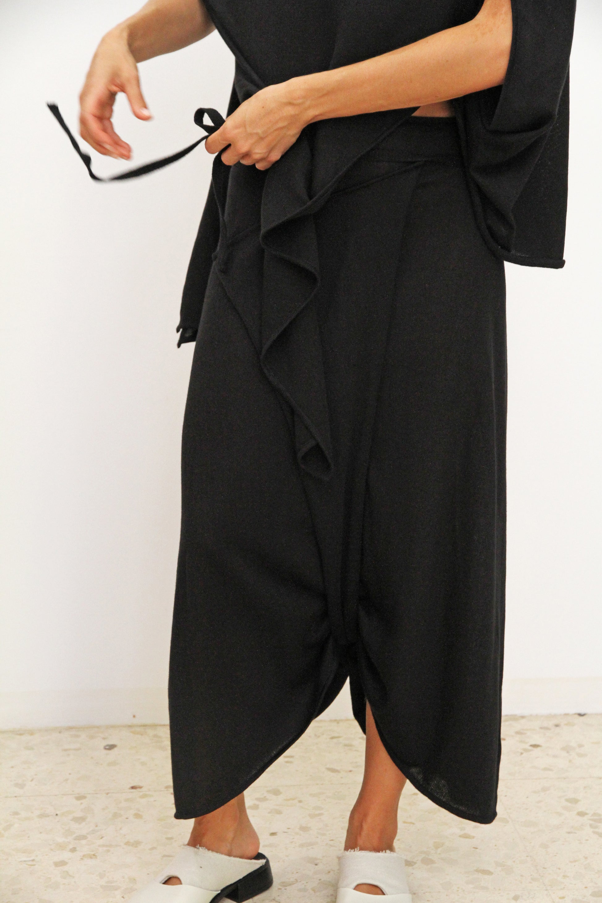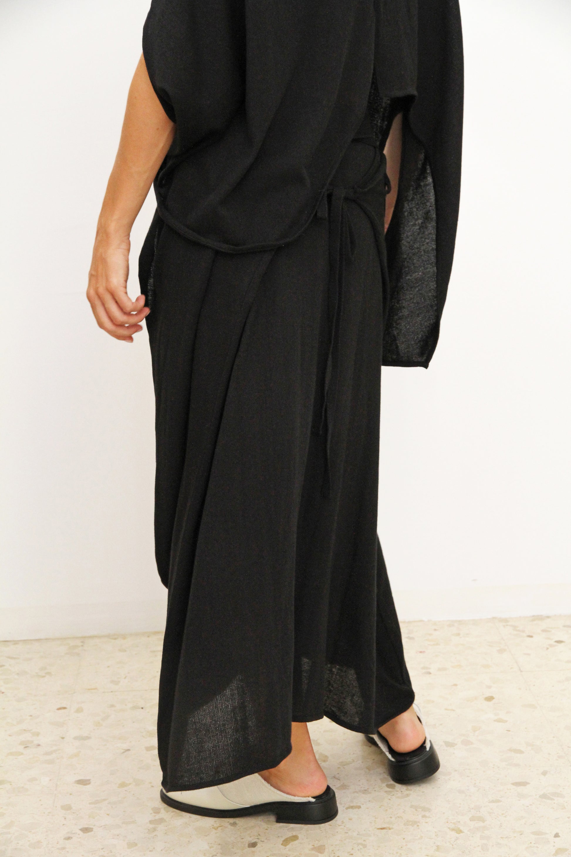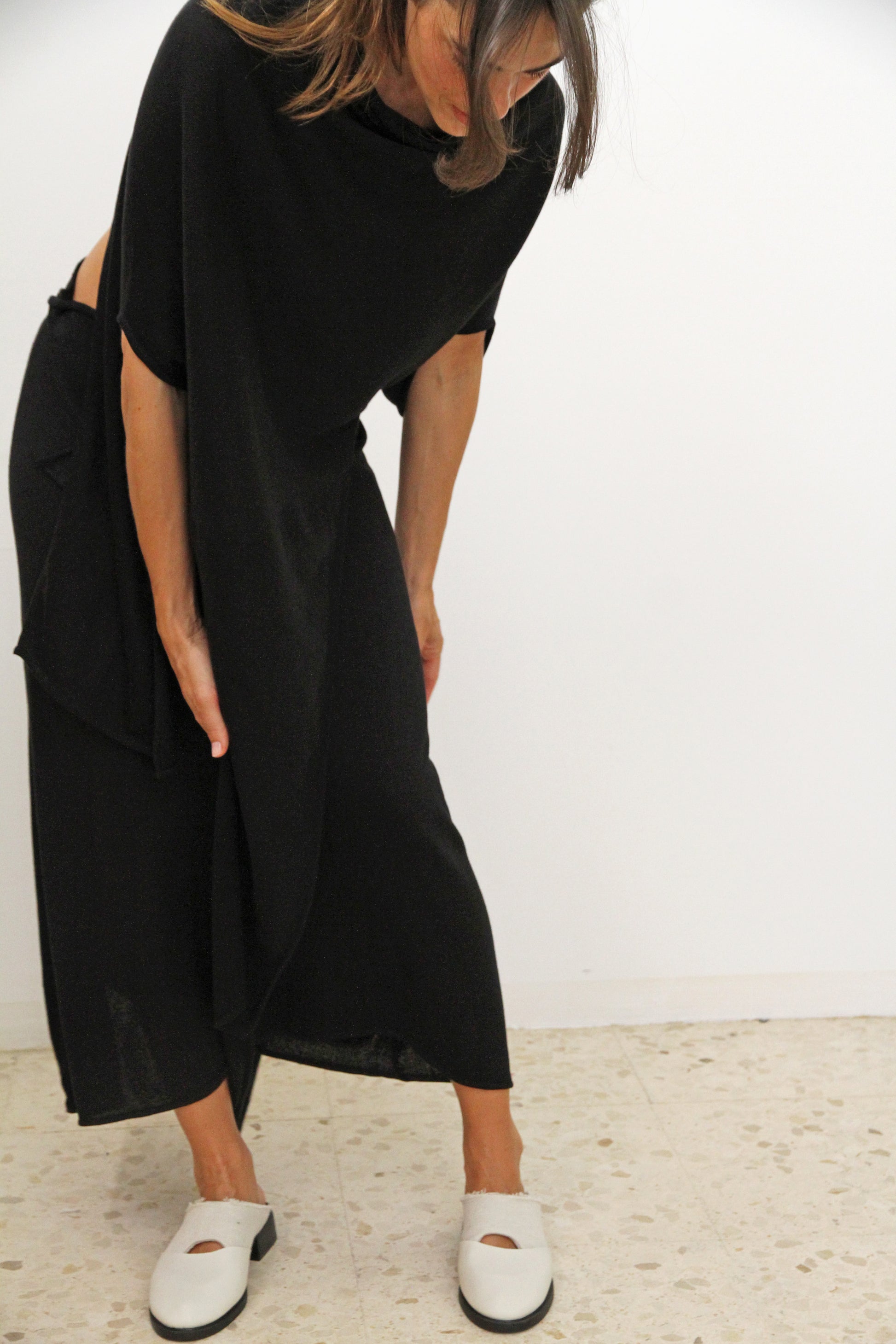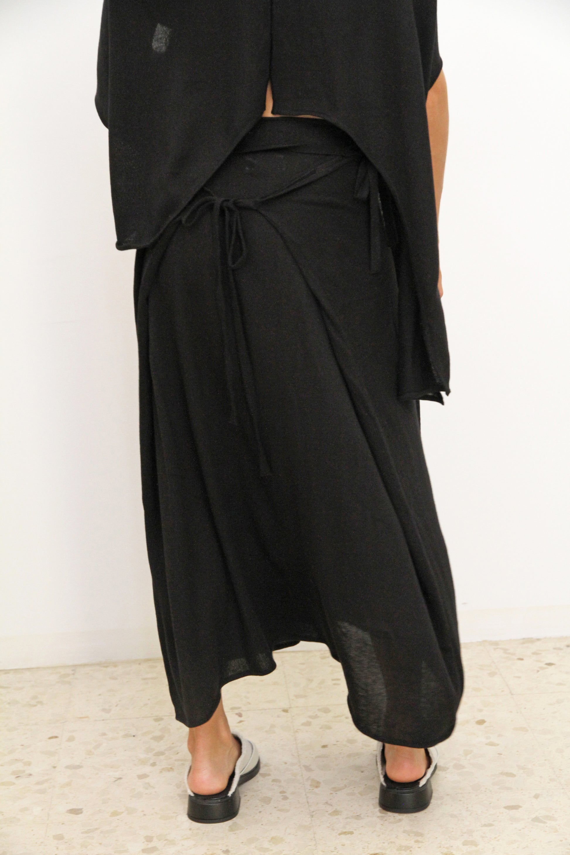 Traje oversize de punto. Pantalón-falda (puedes arreglarlo tú mismo) y top asimétrico.