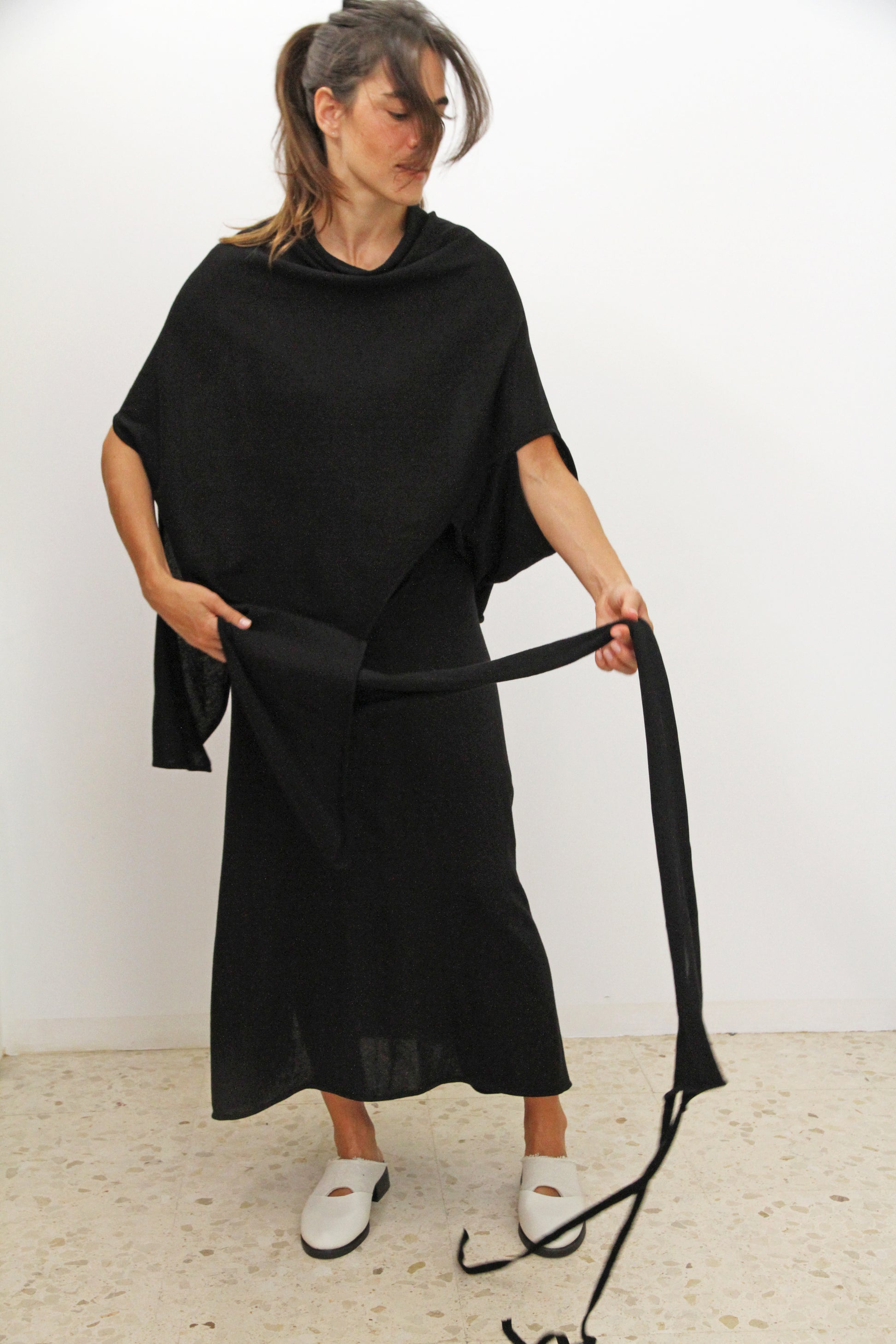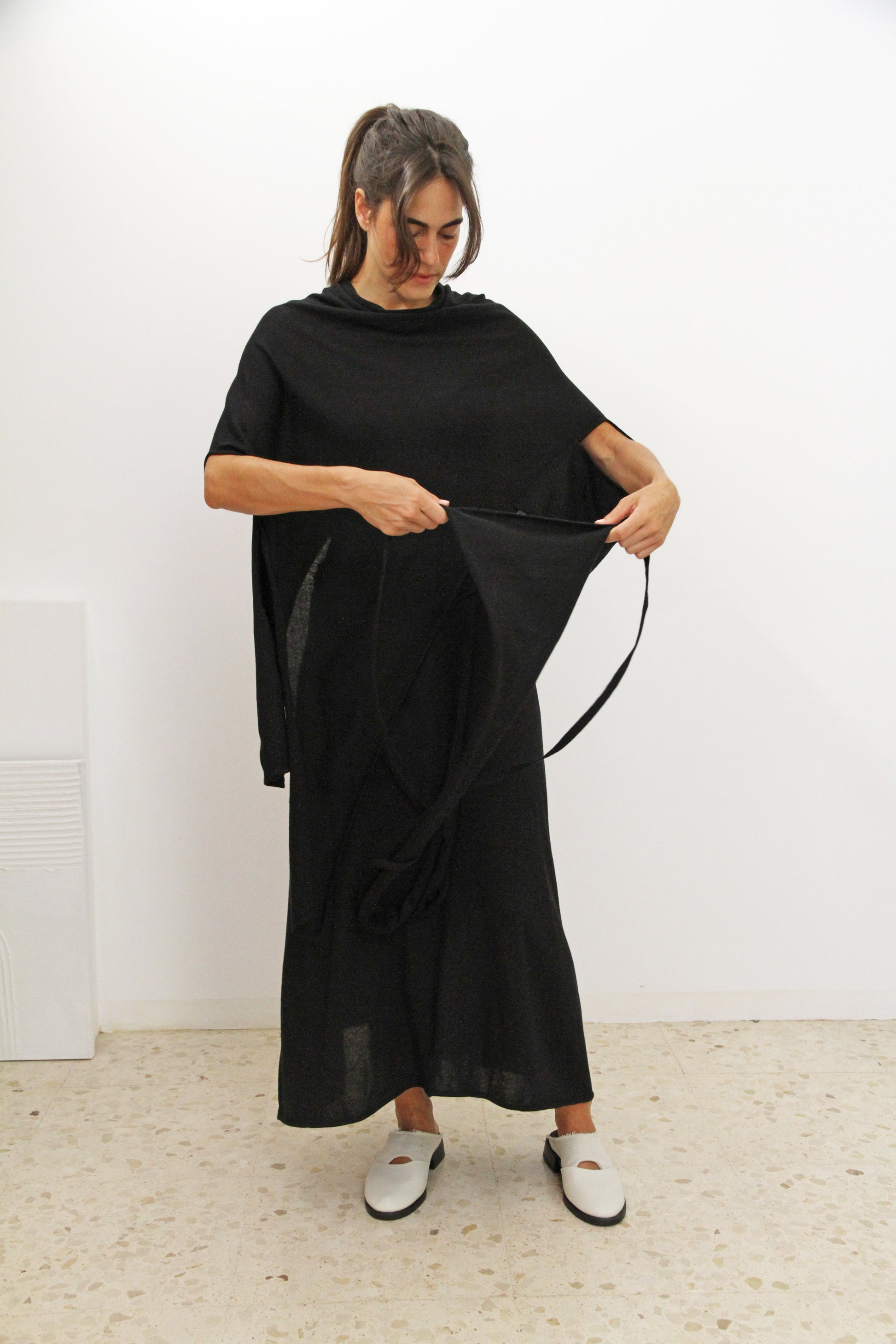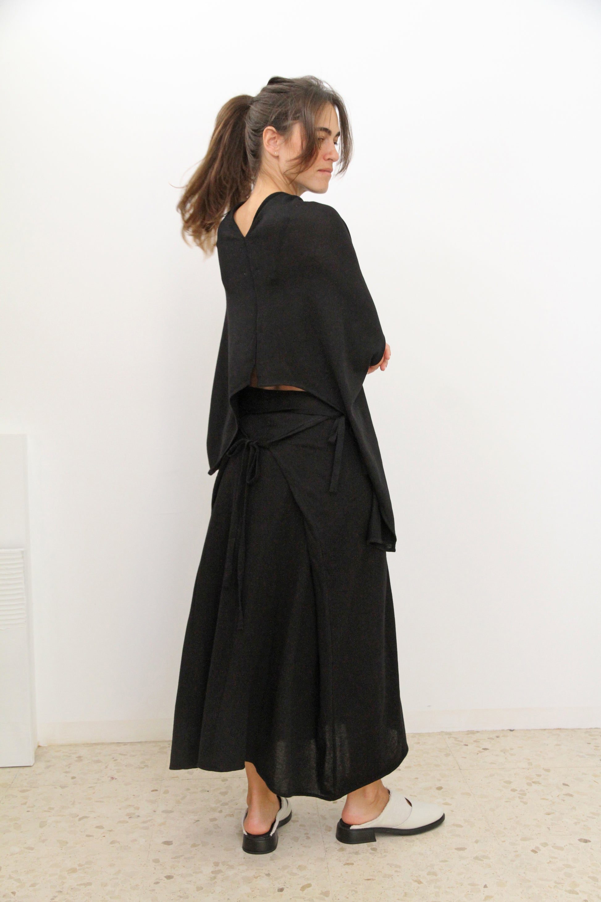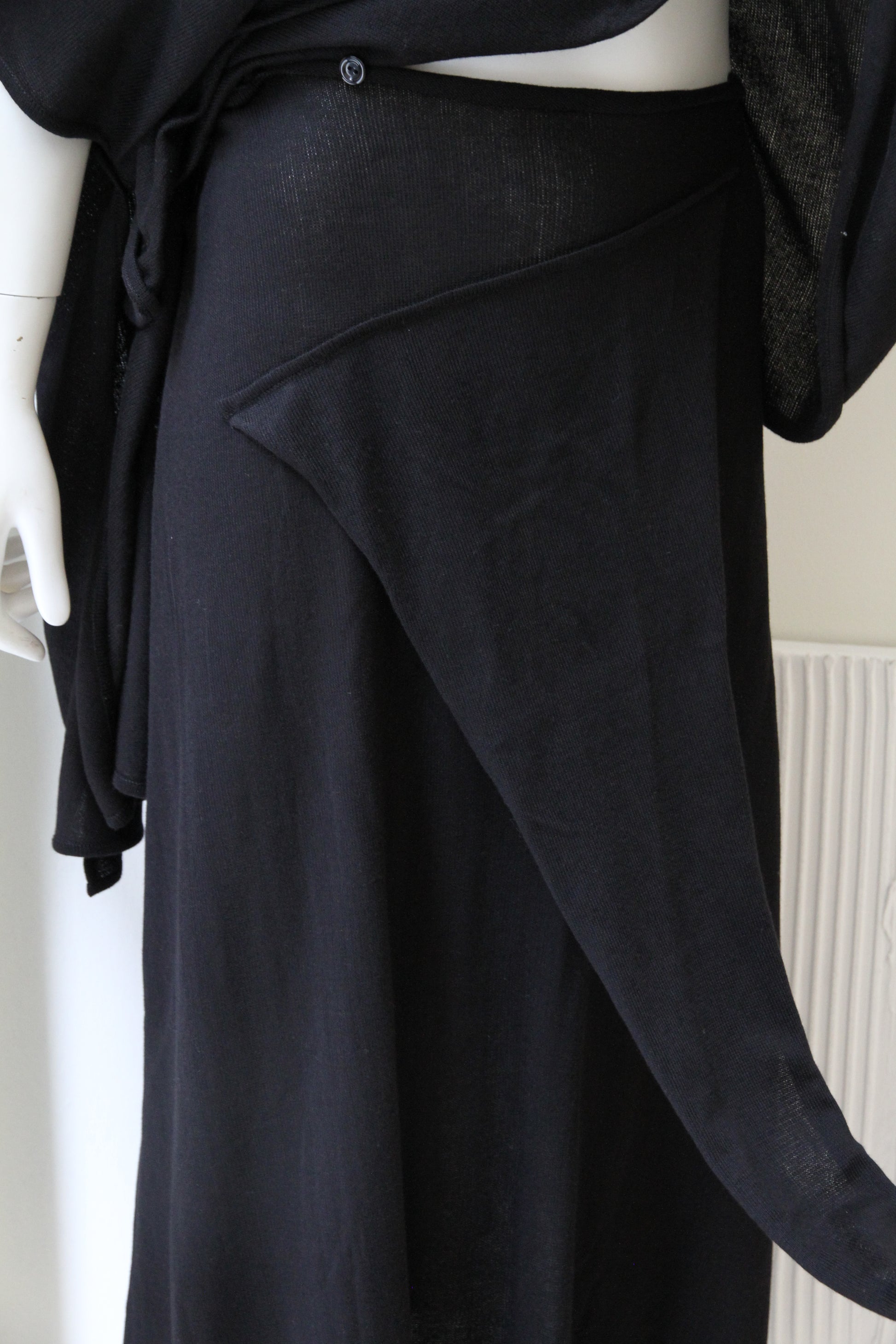 Traje oversize de punto. Pantalón-falda (puedes arreglarlo tú mismo) y top asimétrico.