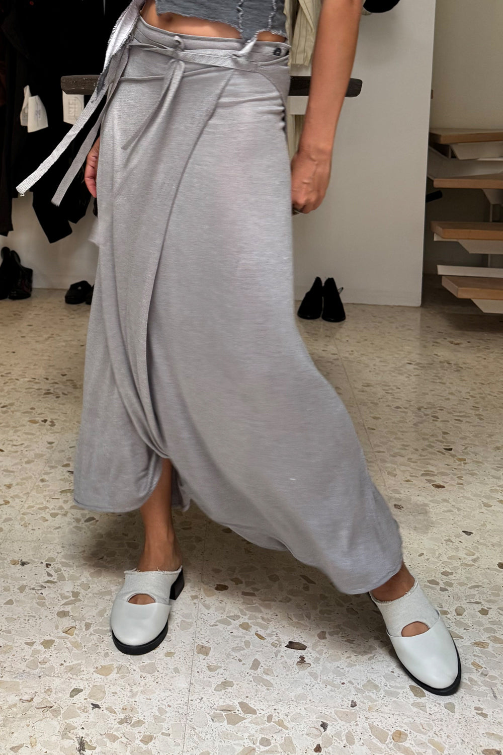 Traje oversize de punto. Pantalón-falda (puedes arreglarlo tú mismo) y top asimétrico.