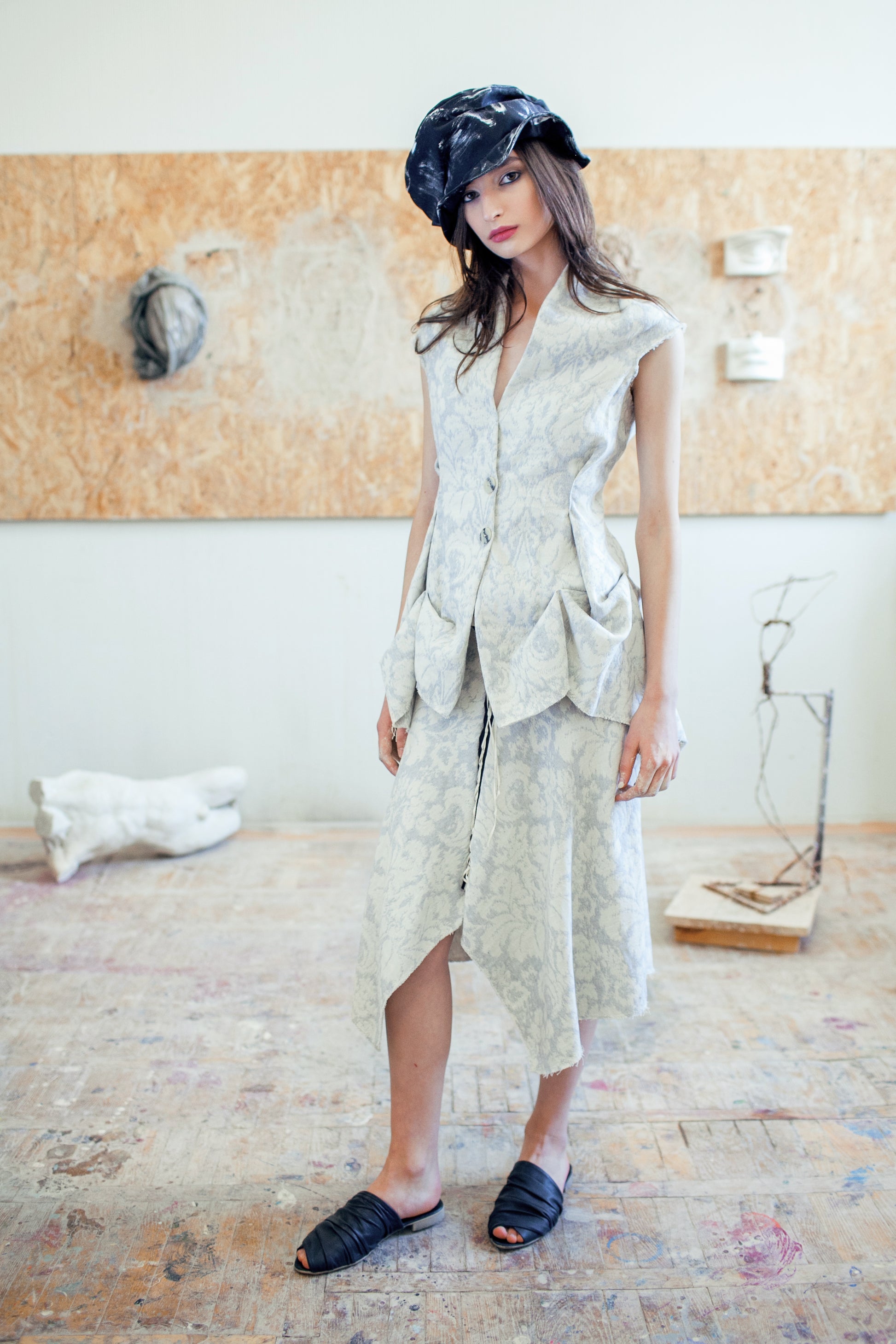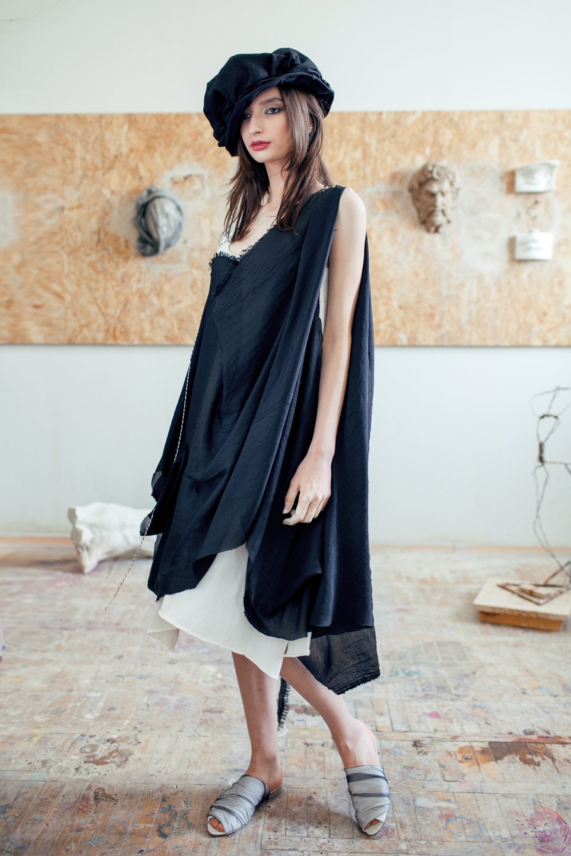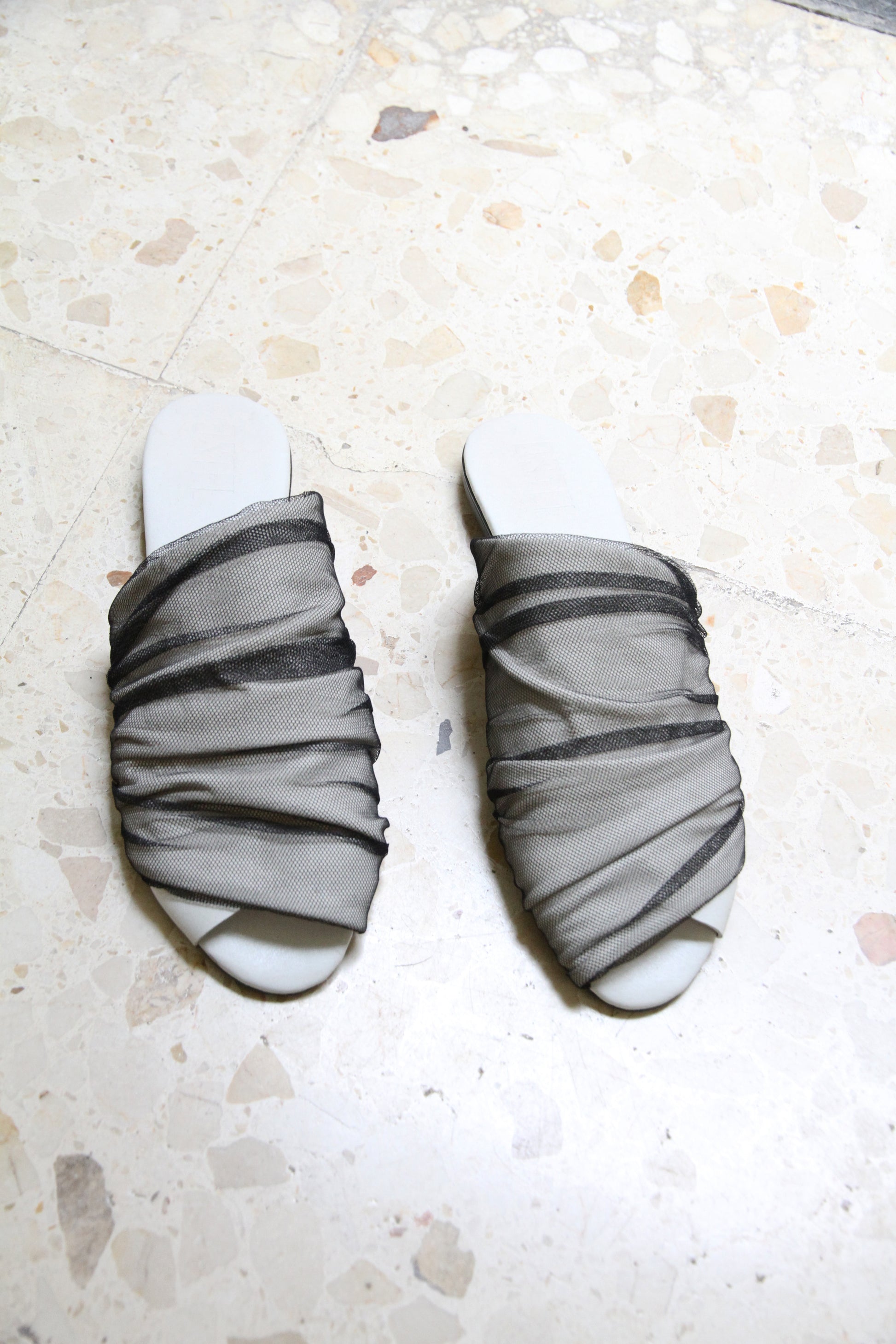 Mules de piel suaves y cómodos con detalle drapeado y puntera abierta.