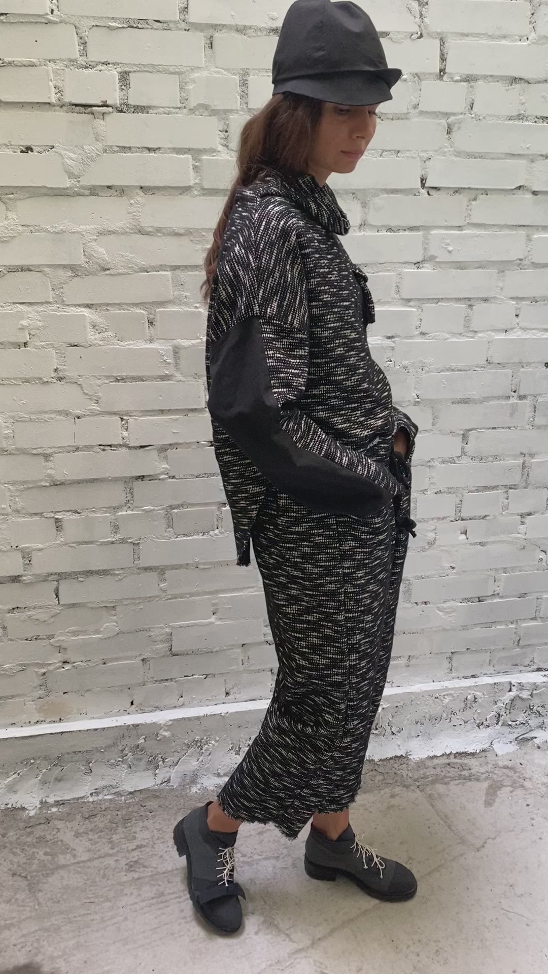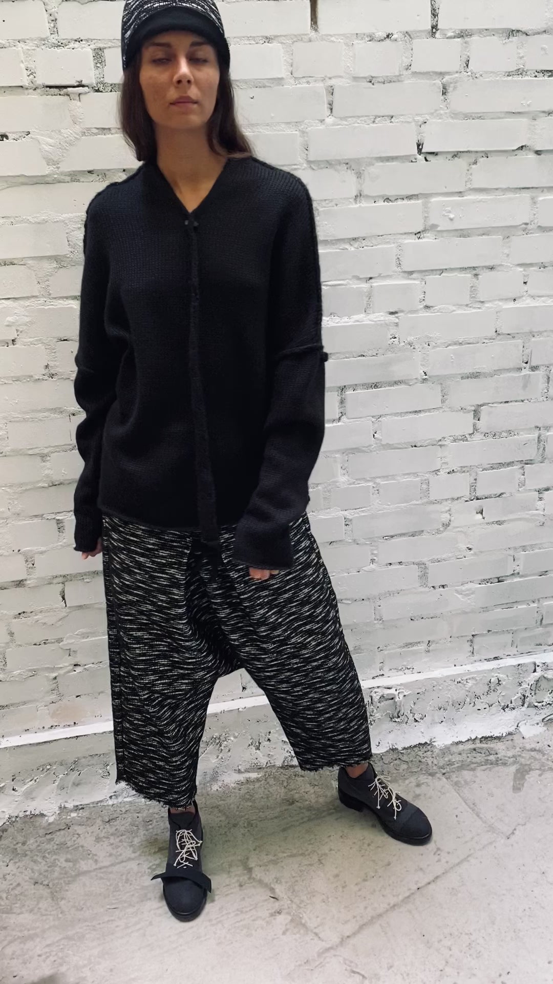 Pantalones unisex anchos con forro. Cuentan con dos bolsillos laterales. La talla se regula mediante botones en el cinturón, cintas en la parte delantera y una goma elástica en el interior. Su largo tobillero permite que personas de diversos estilos puedan llevarlos en su totalidad, incluso en personas de baja estatura.