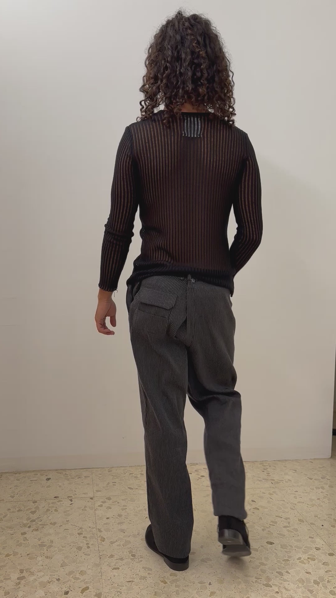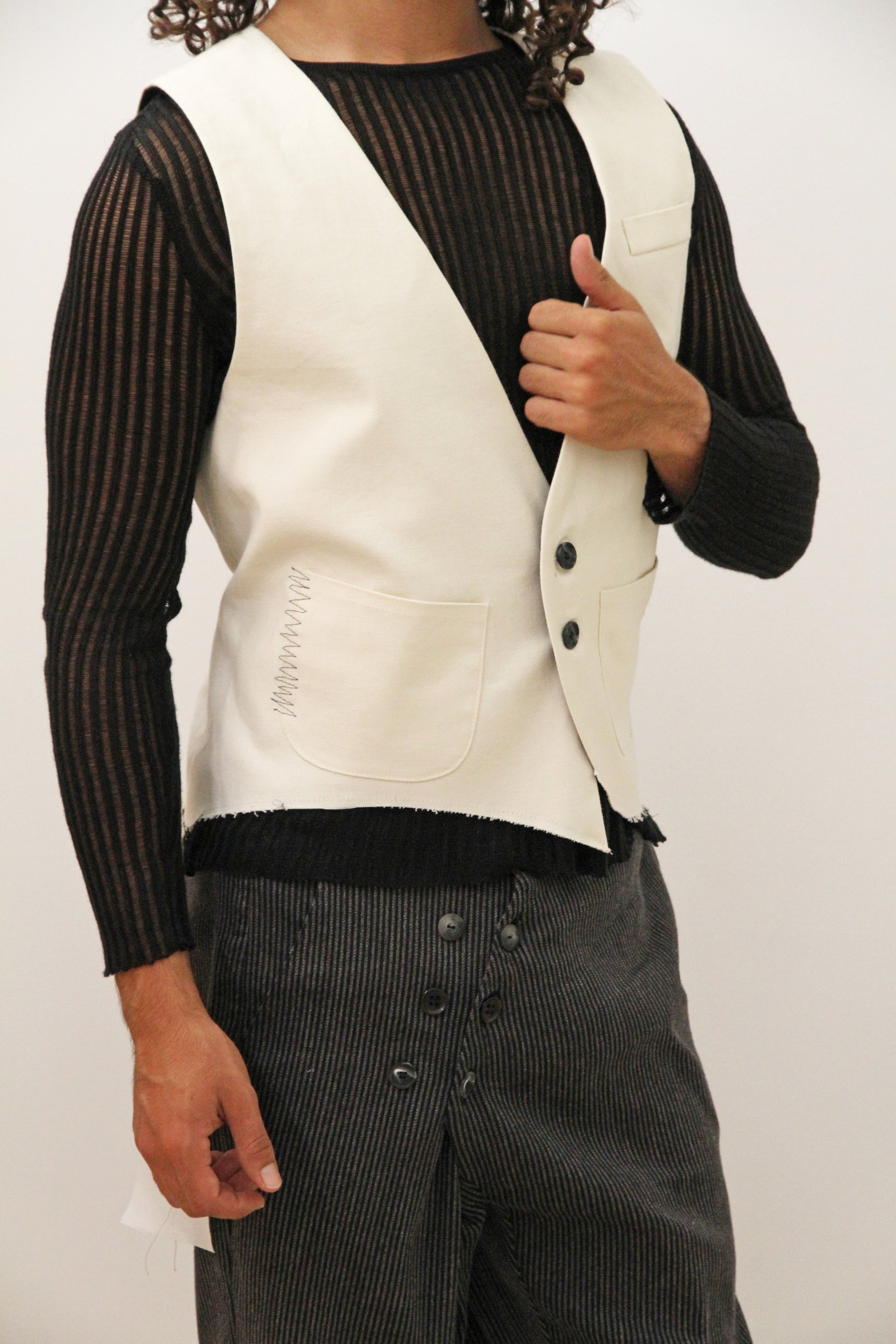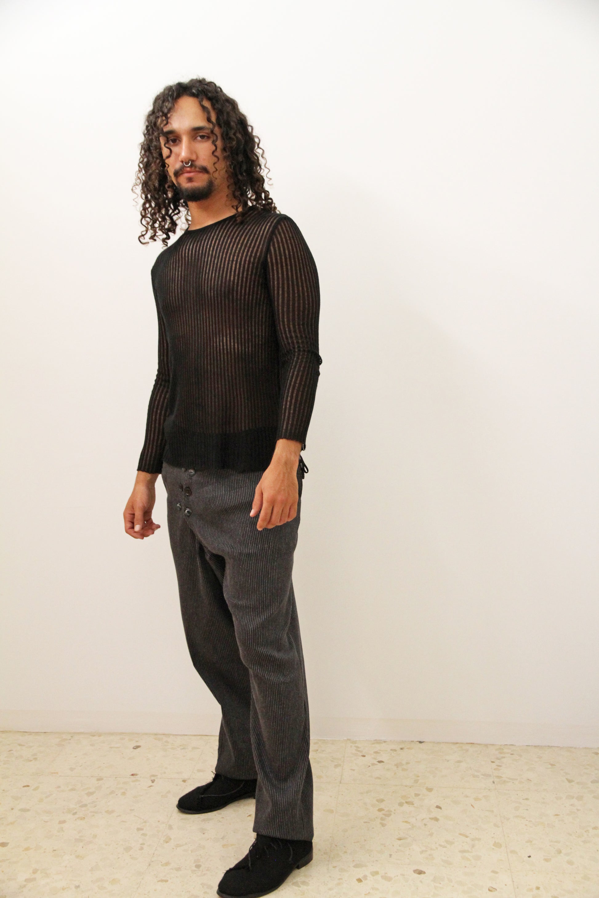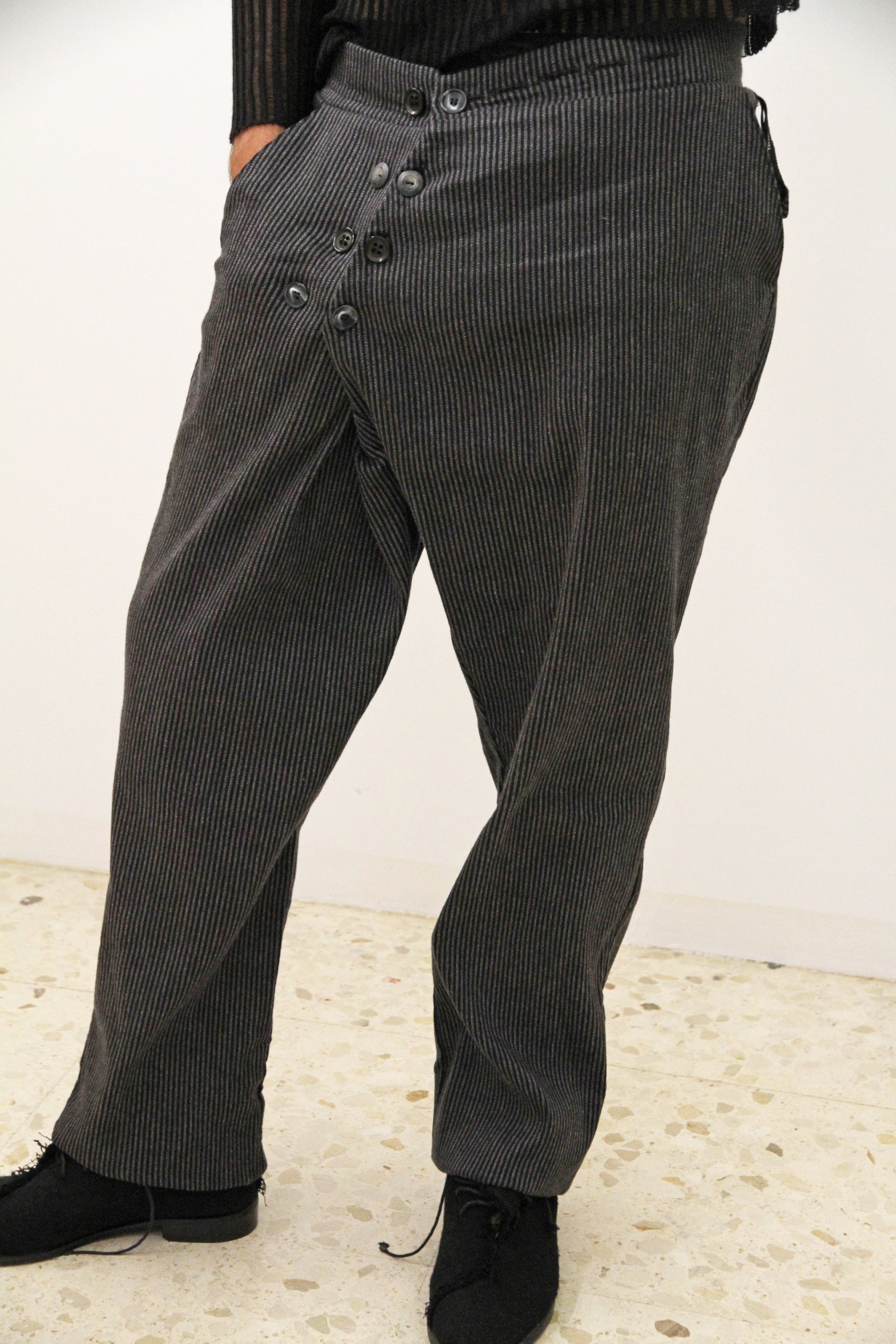 Pantalón cruzado unisex con botones y dos bolsillos delanteros. Se ajusta por detrás con botones y cuenta con un bolsillo.