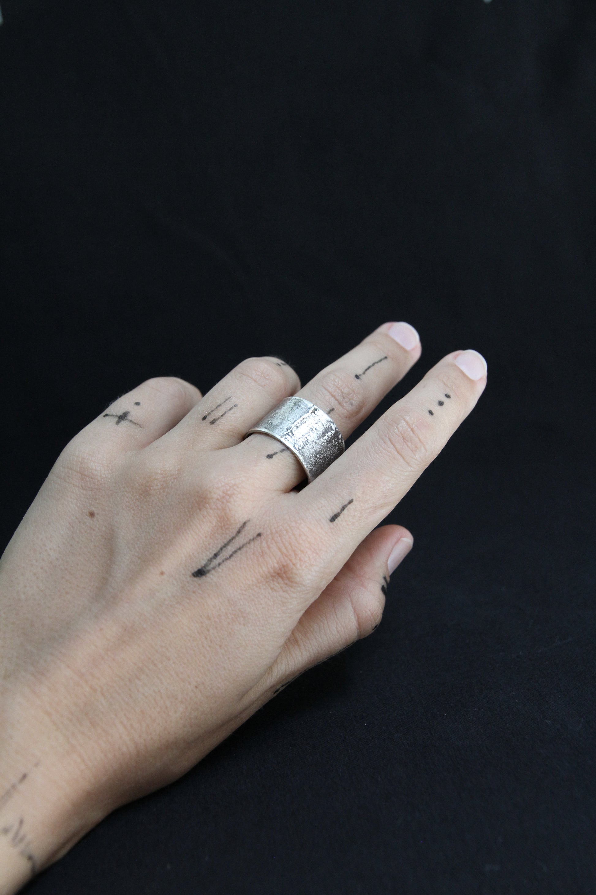 Duna se inspira en los cambiantes paisajes desérticos: un anillo que atesora la memoria de la erosión, el tiempo y el viento. Su superficie mate está marcada por irregularidades, como la piedra arrastrada por la arena o las silenciosas crestas de una duna.