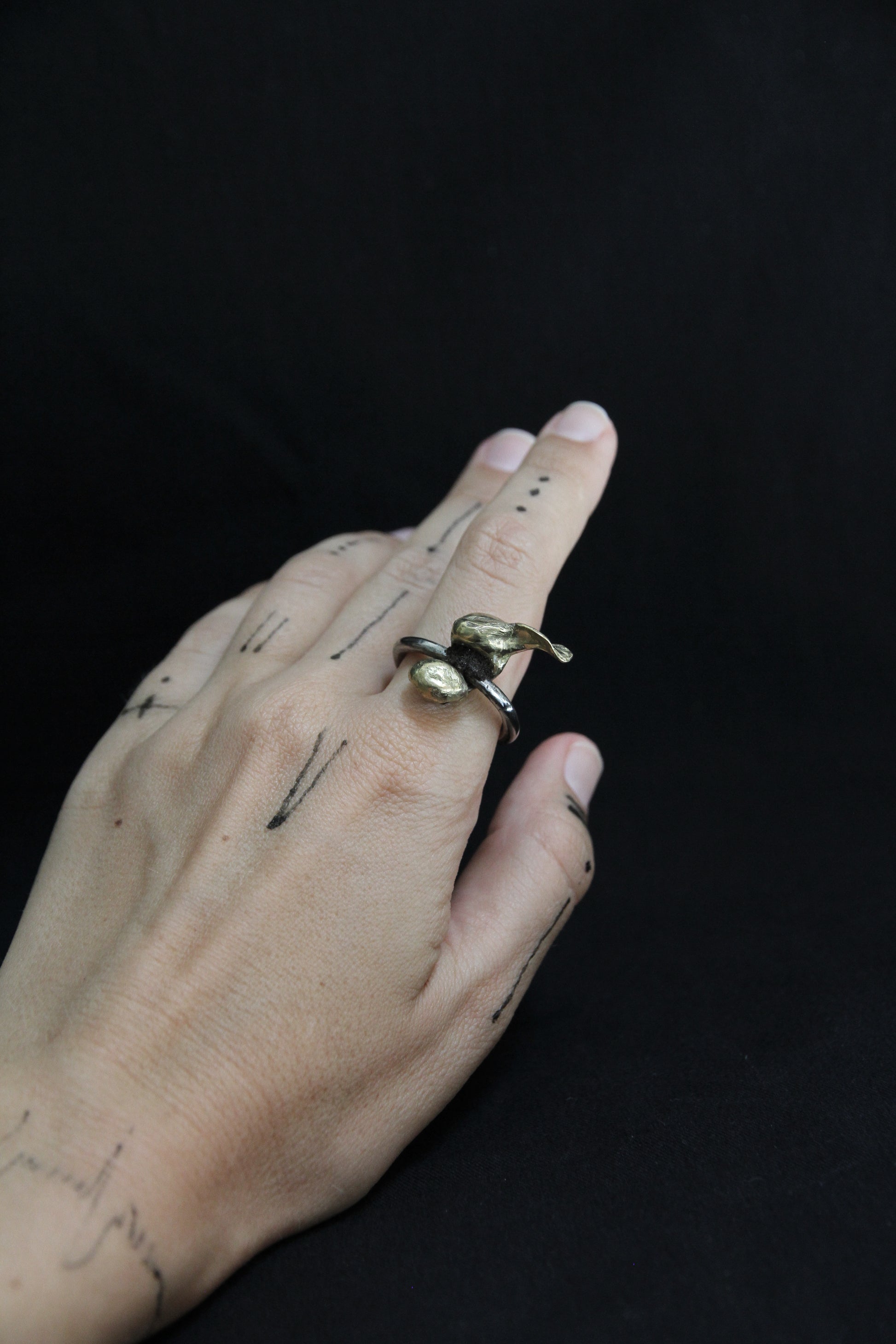 La banda de acero alberga una oleada de latón: un cuerpo abstracto y fluido que desafía la simetría y la definición. Podría ser movimiento, crecimiento, emoción o recuerdo, congelado a mitad de compás. Pulse es una escultura portátil, primitiva pero delicada, creada para despertar el tacto y provocar la reflexión.