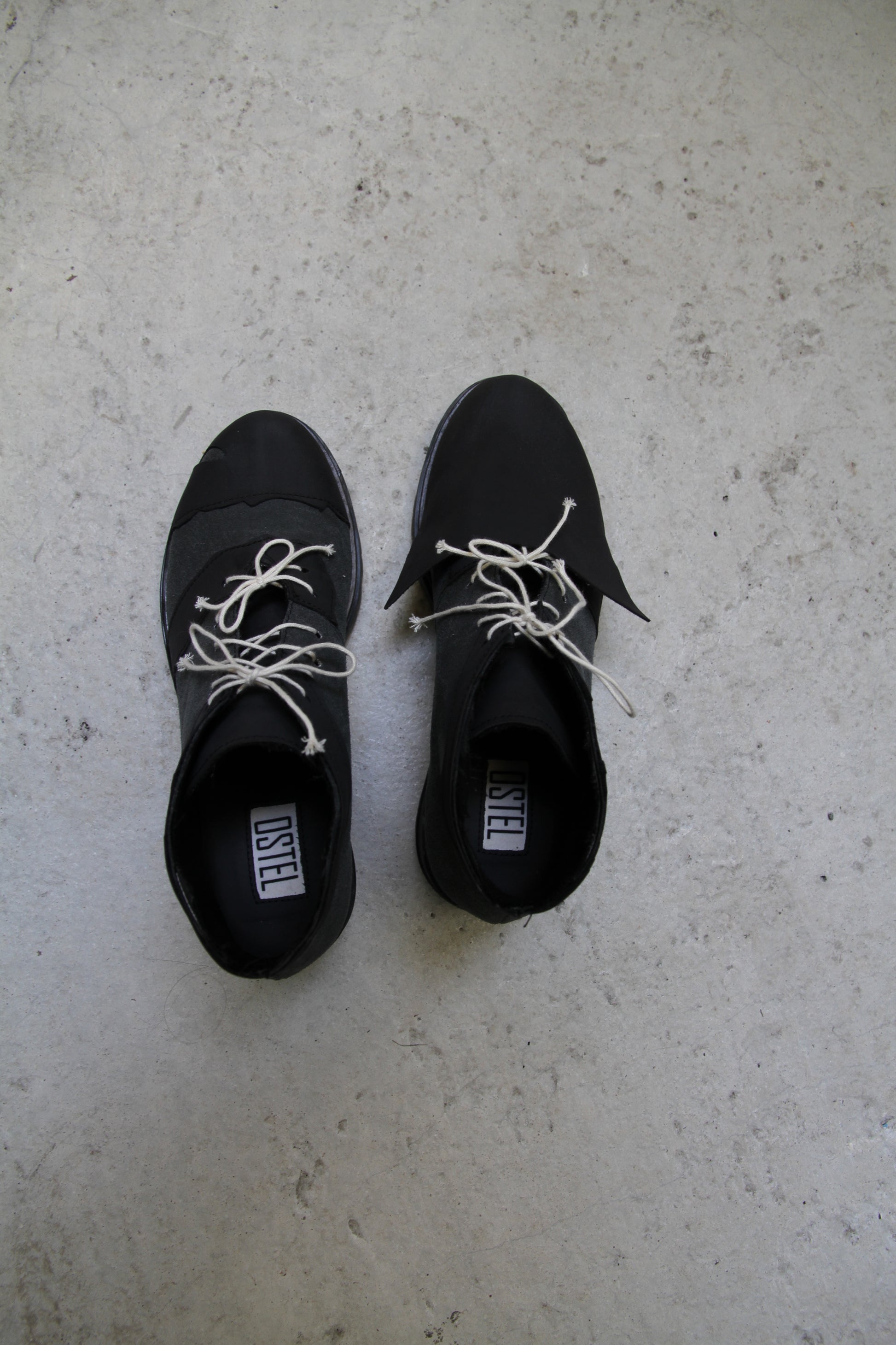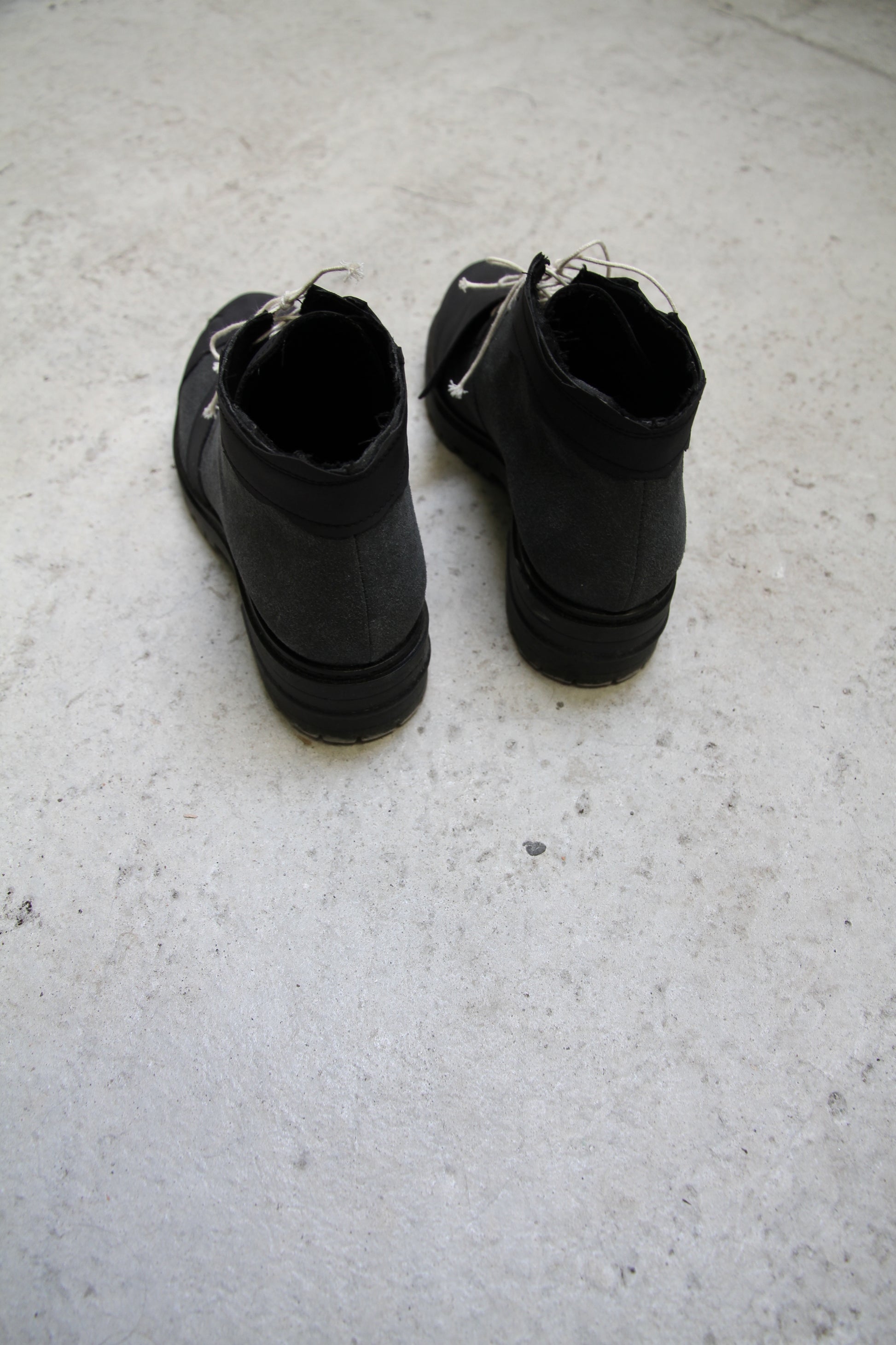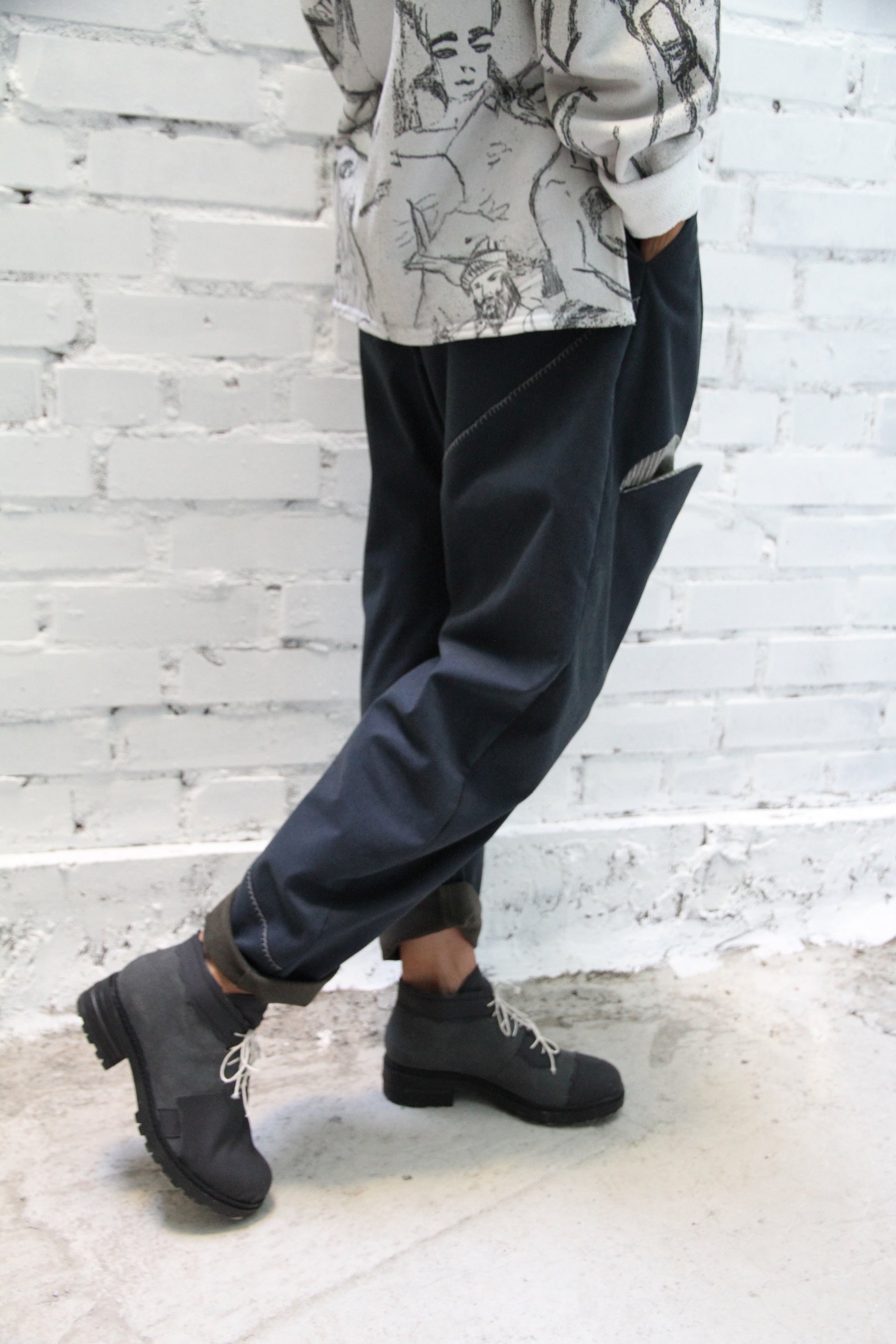 Zapatos veganos de patchwork con suela gruesa corrugada. Los zapatos izquierdo y derecho tienen un estilo diferente. Las costuras evocan atmósferas efímeras del pasado. Están hechos de cuero artificial hipoalergénico con microfibra. El cuero de poliuretano (PU) es ecológico, más ligero que el cuero, resistente al desgarro y a la abrasión. El cuero de poliuretano transmite mejor el aire que algunos materiales naturales gracias a la gran cantidad de poros en su estructura.