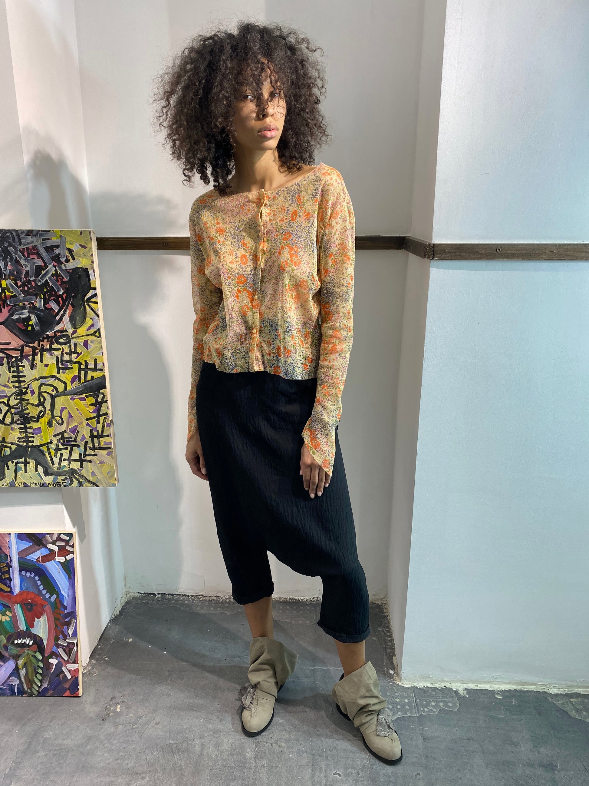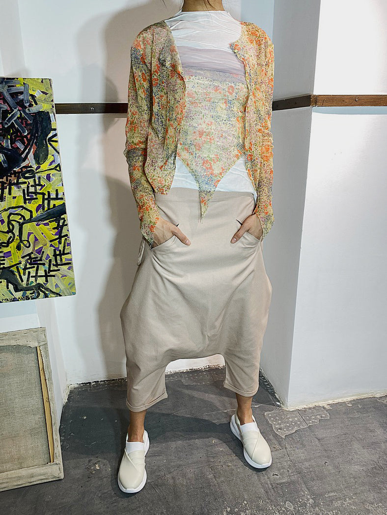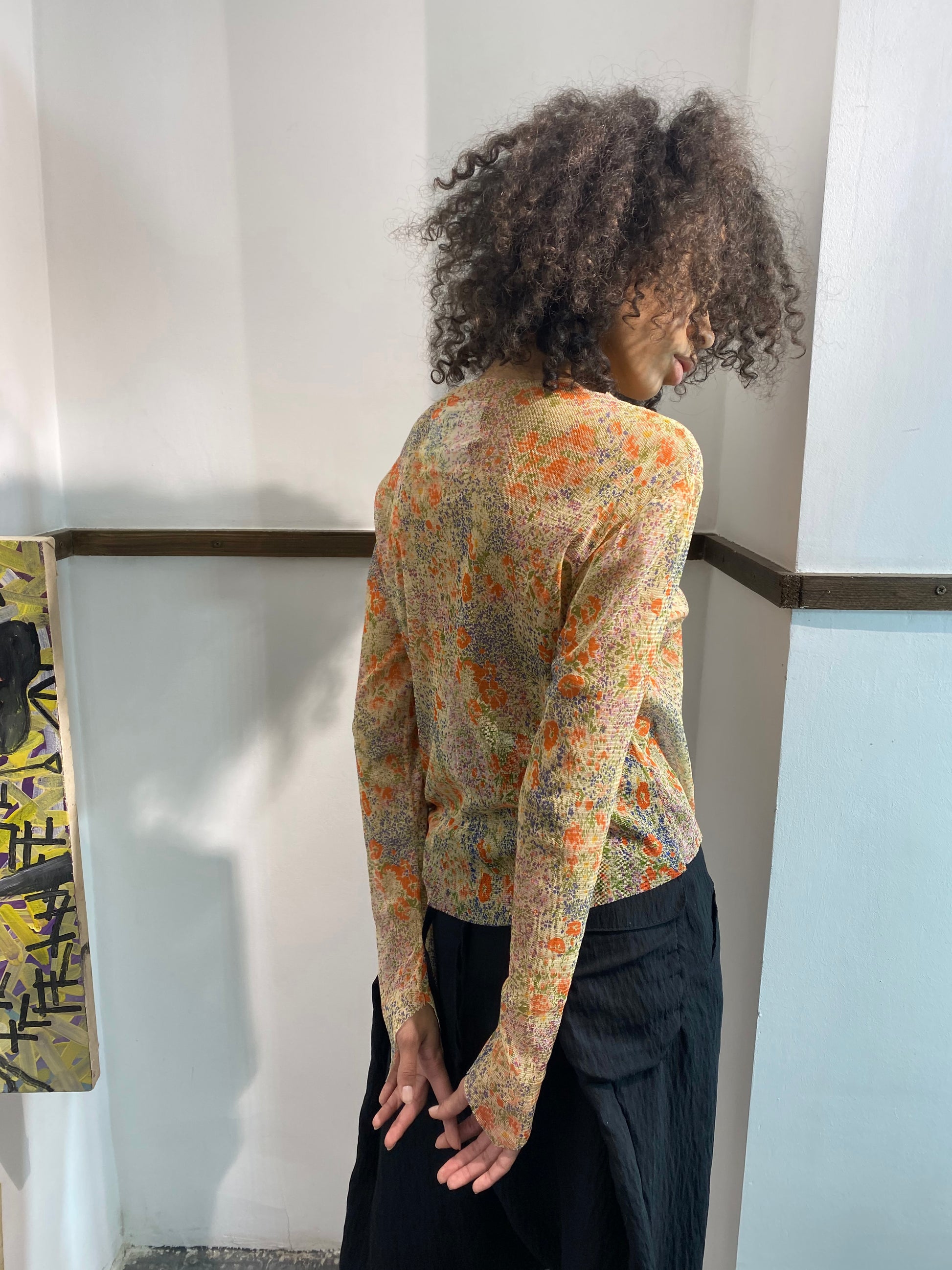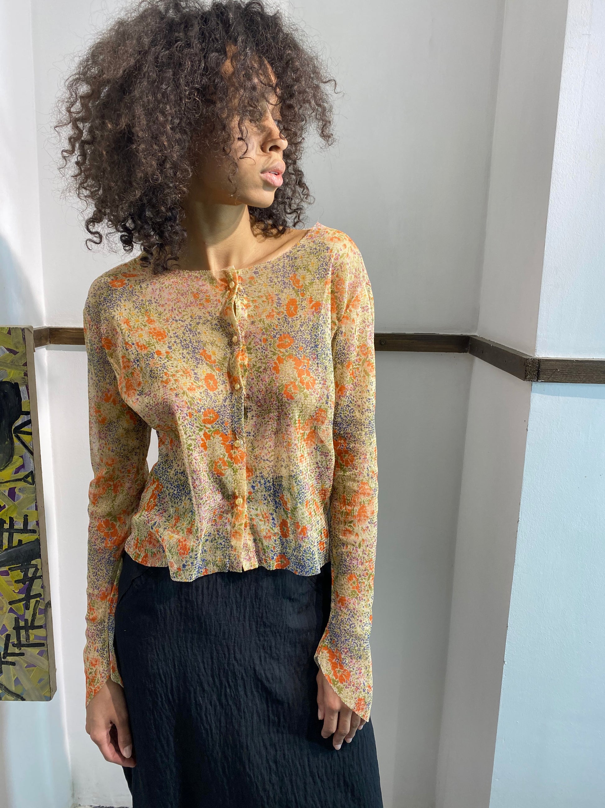 Top de malla de jersey. Mangas con bajo en ángulo. Cierre con botones y cremallera, ideal para usar como top corto.