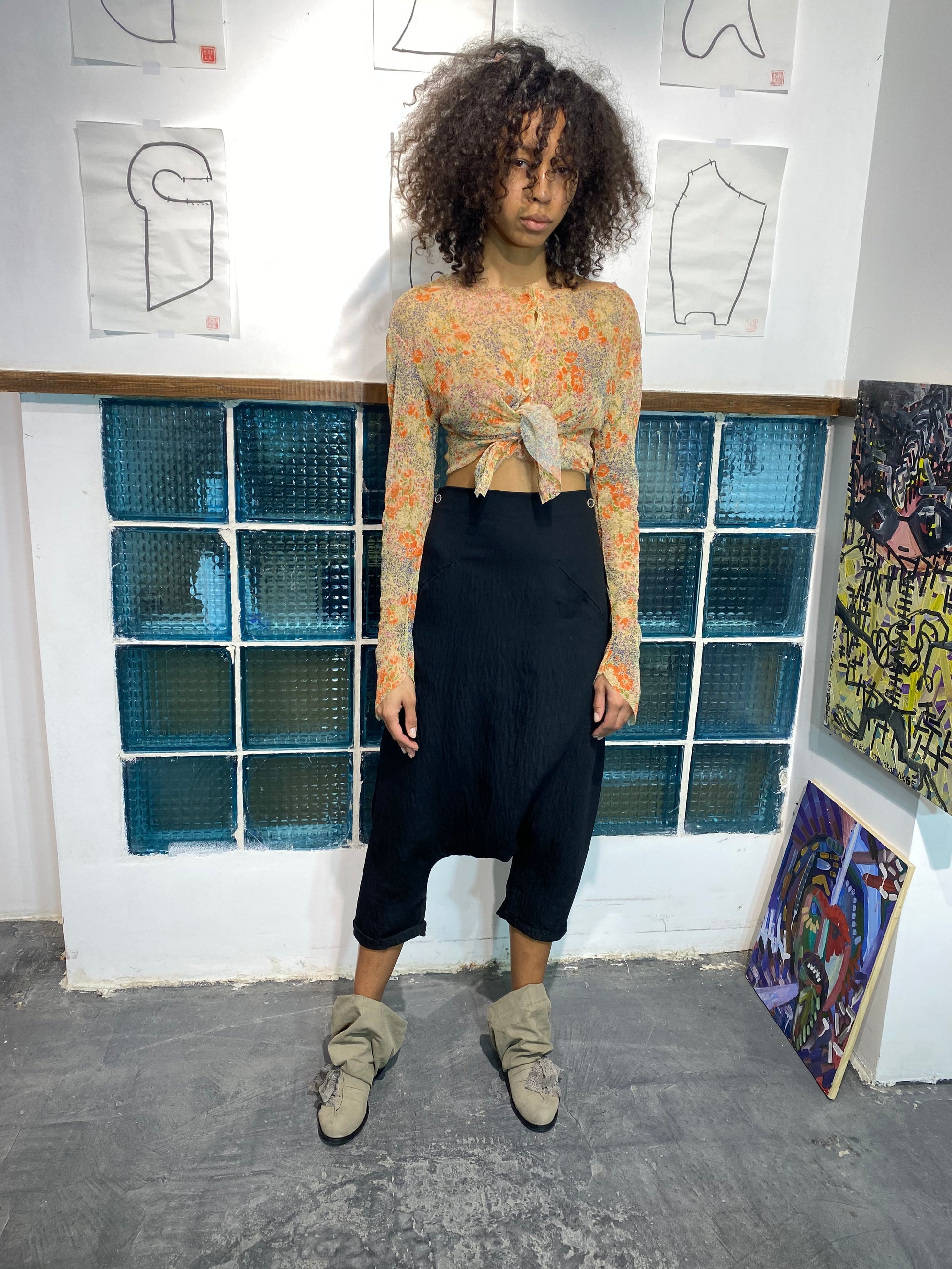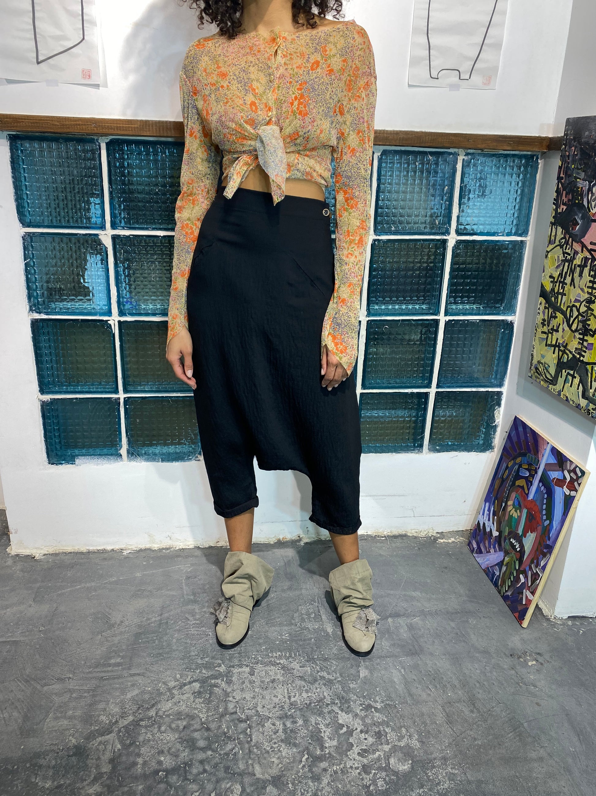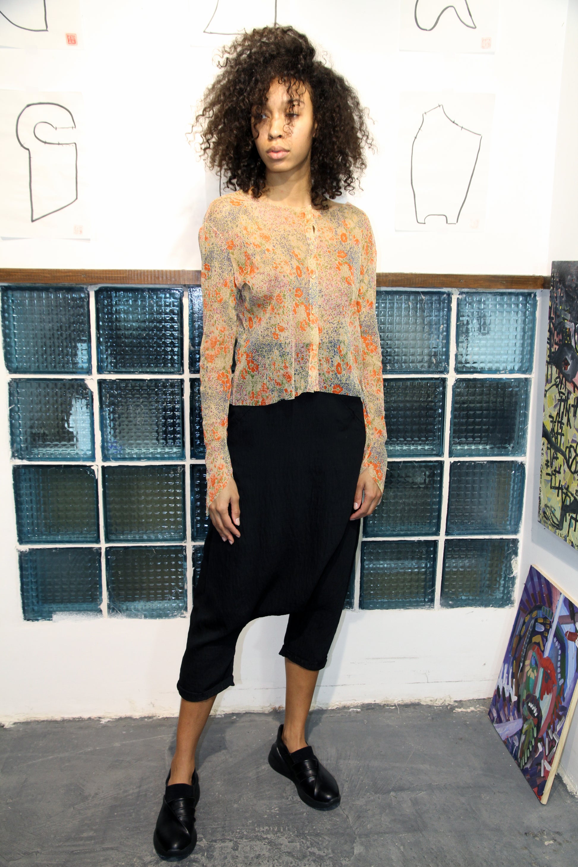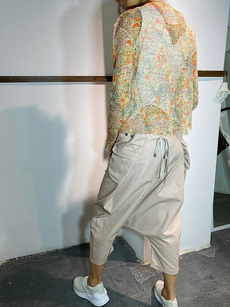 Top de malla de jersey. Mangas con bajo en ángulo. Cierre con botones y cremallera, ideal para usar como top corto.