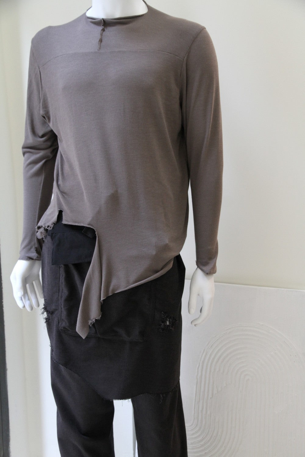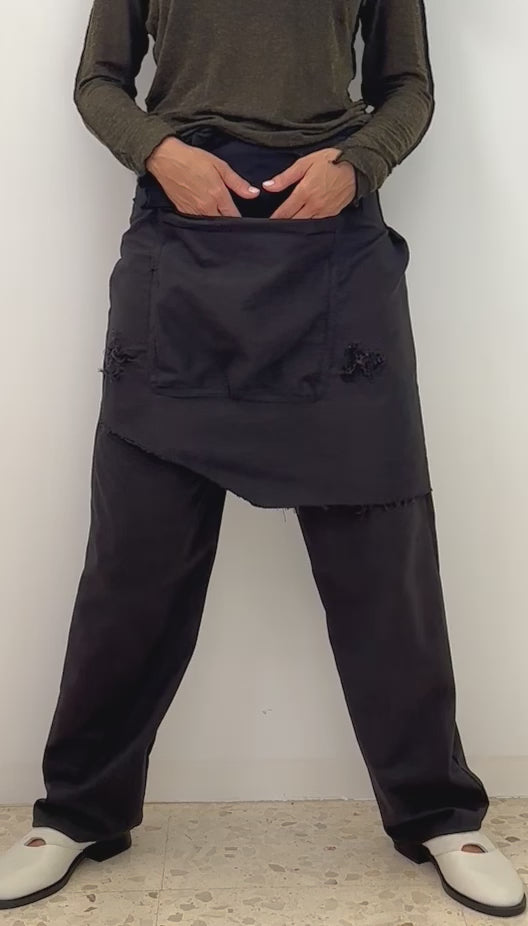 Pantalón unisex con falda cruzada. Un bolsillo grande al frente.