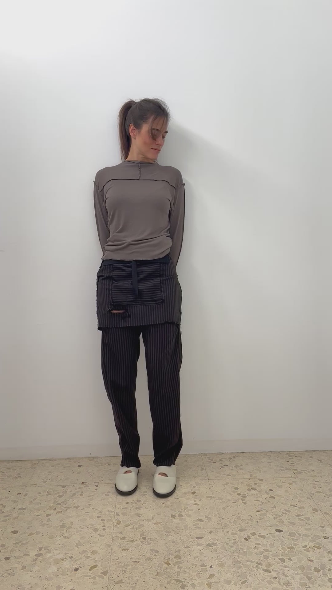 Pantalón unisex con falda cruzada. Un bolsillo grande al frente.