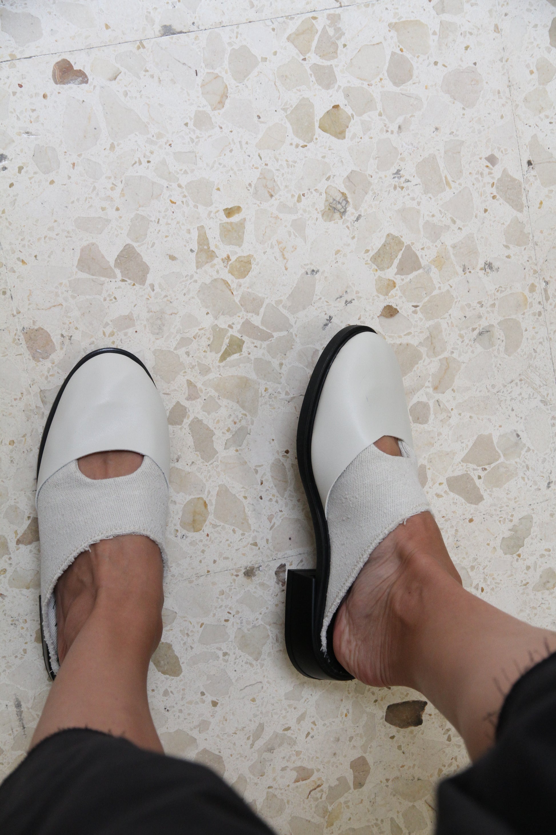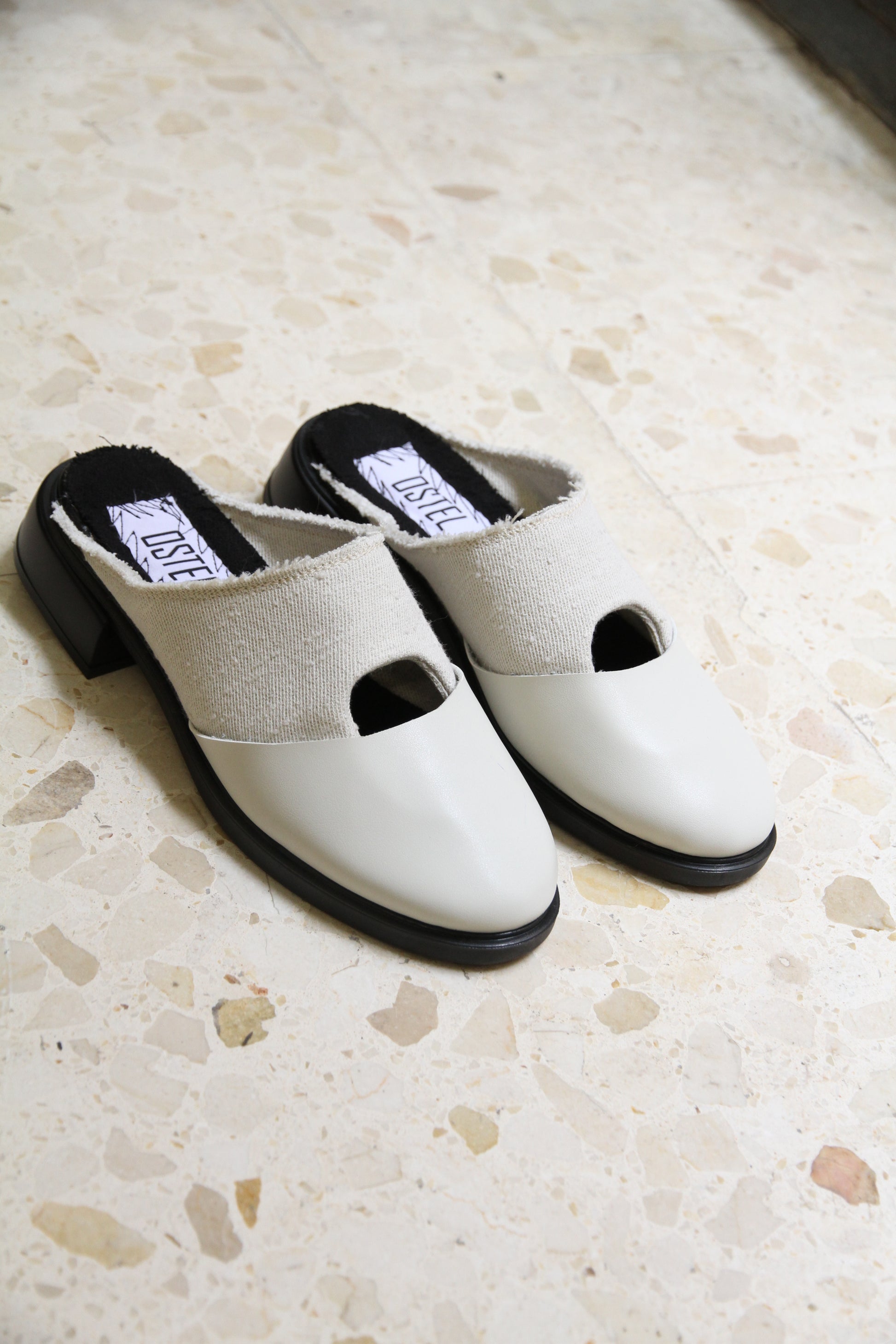 Zapatos de piel sintética y algodón. Tacón de 3 cm.