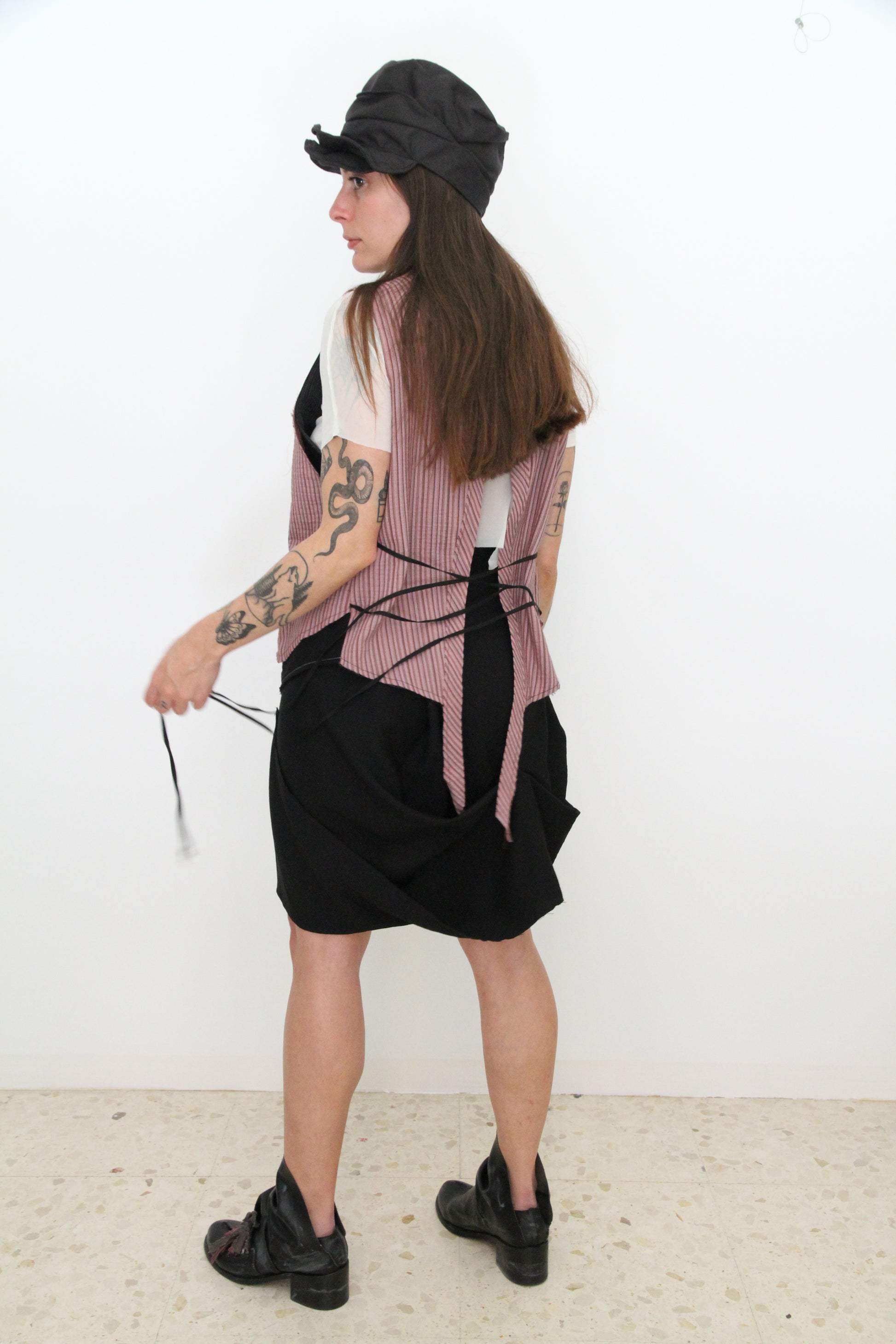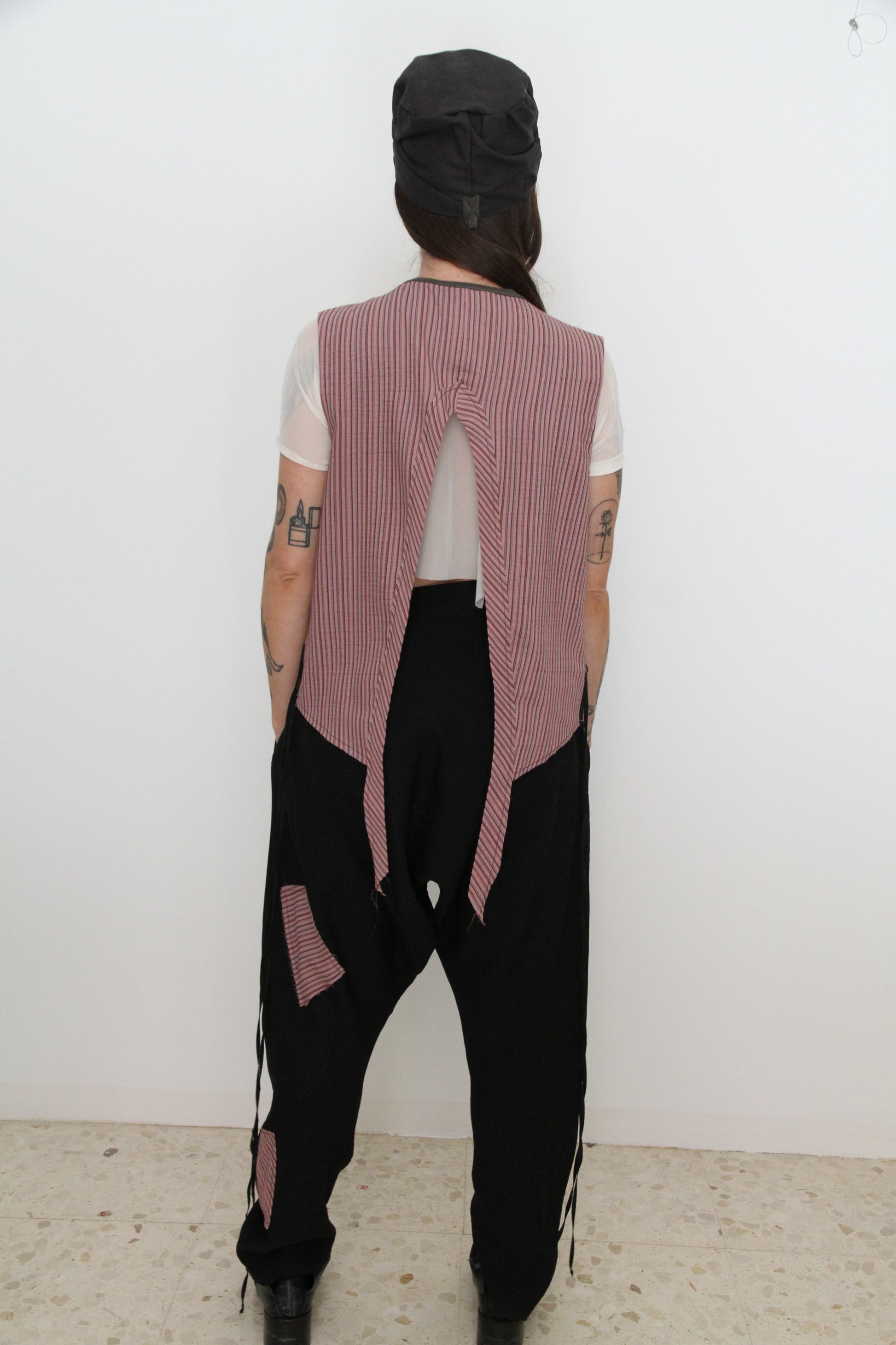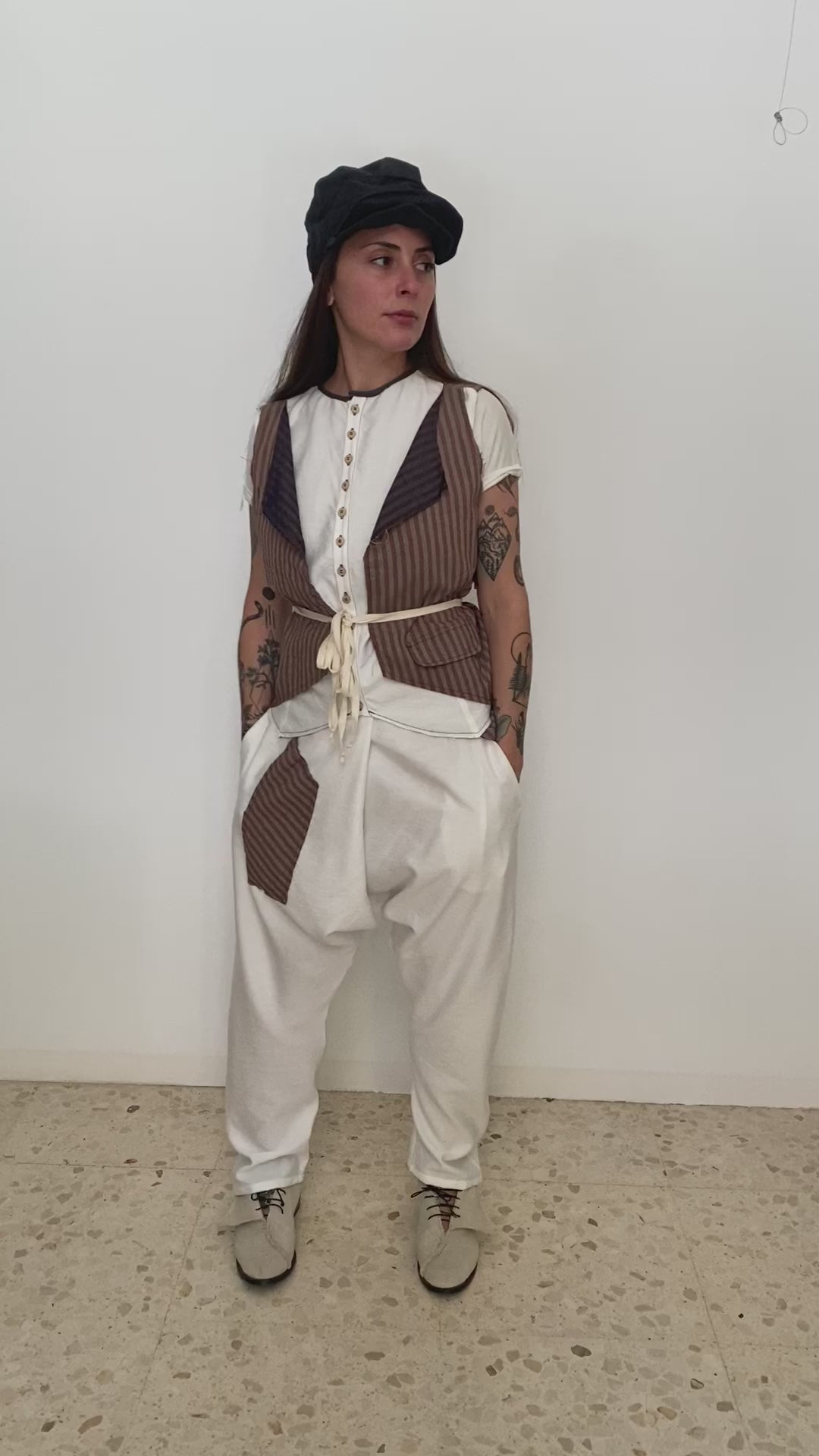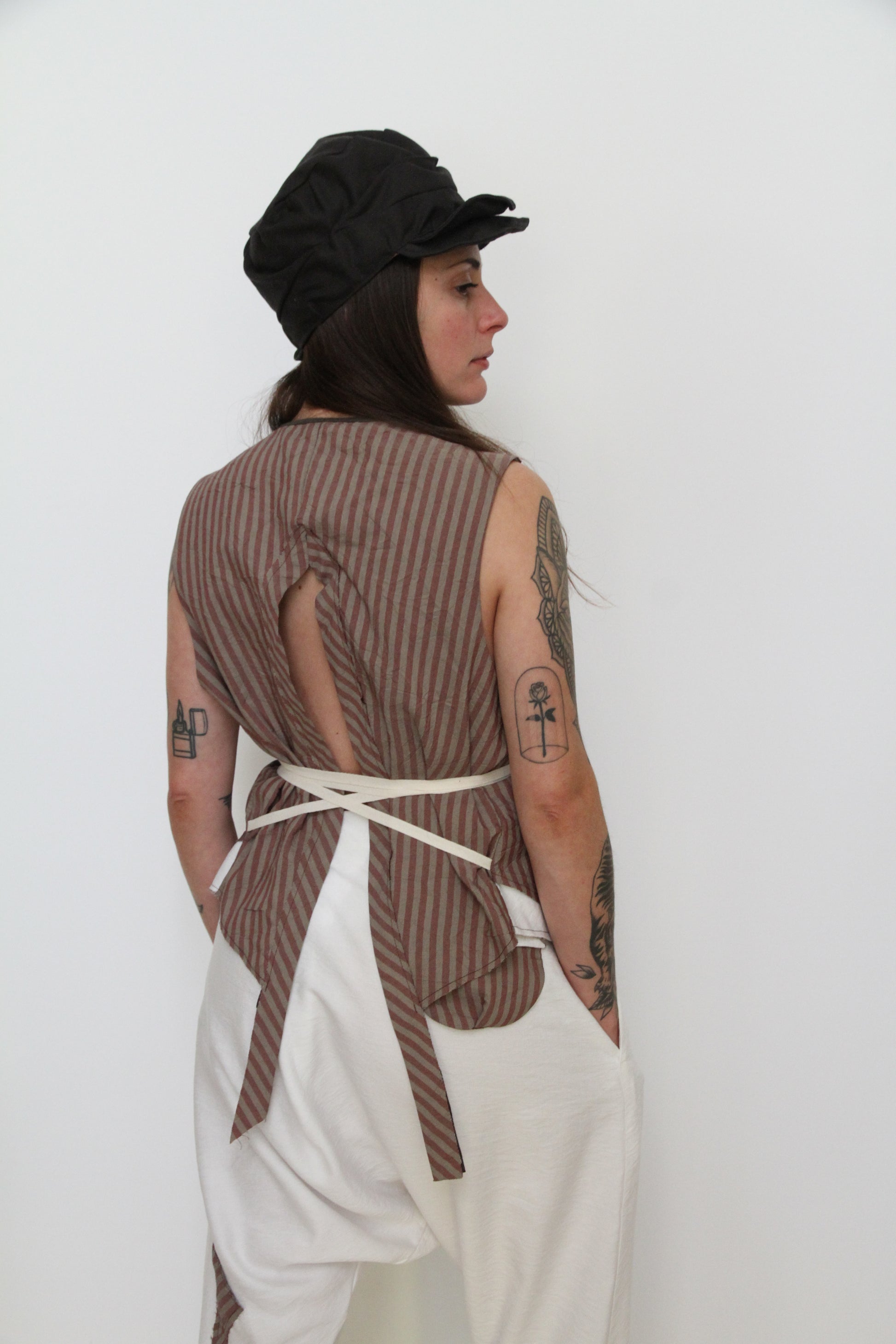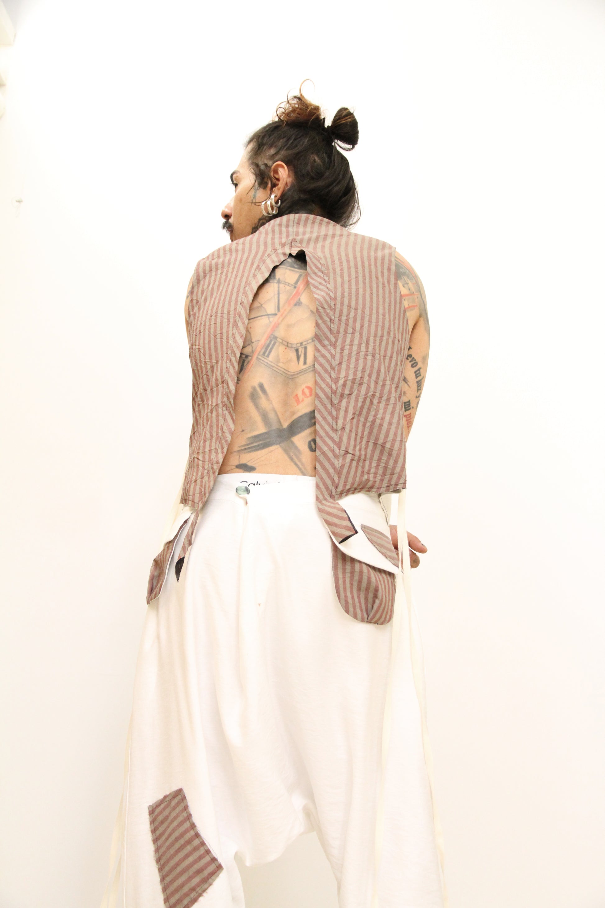Chaleco con capas y espalda abierta. Unisex. Se fija con cintas en la cintura.
