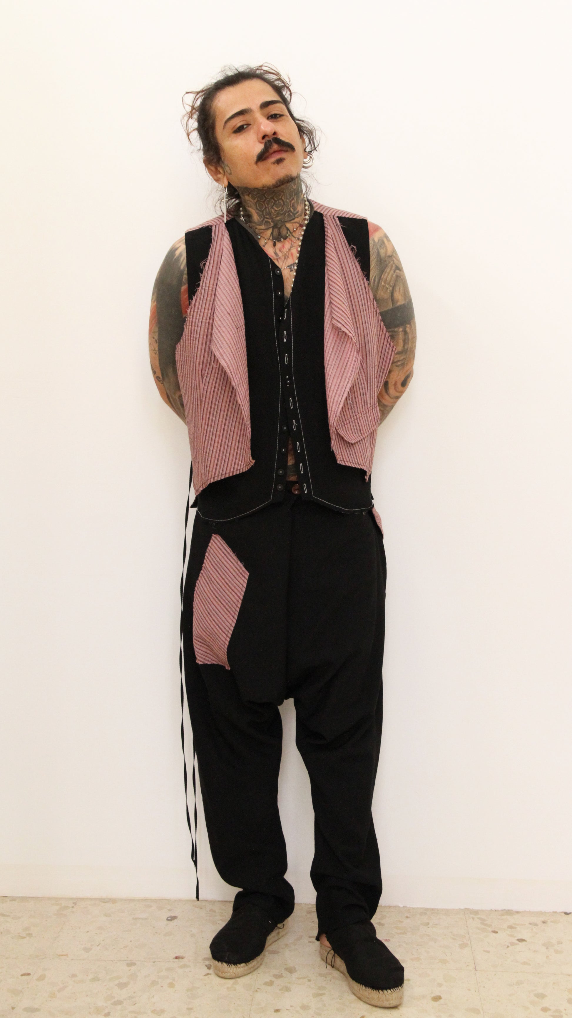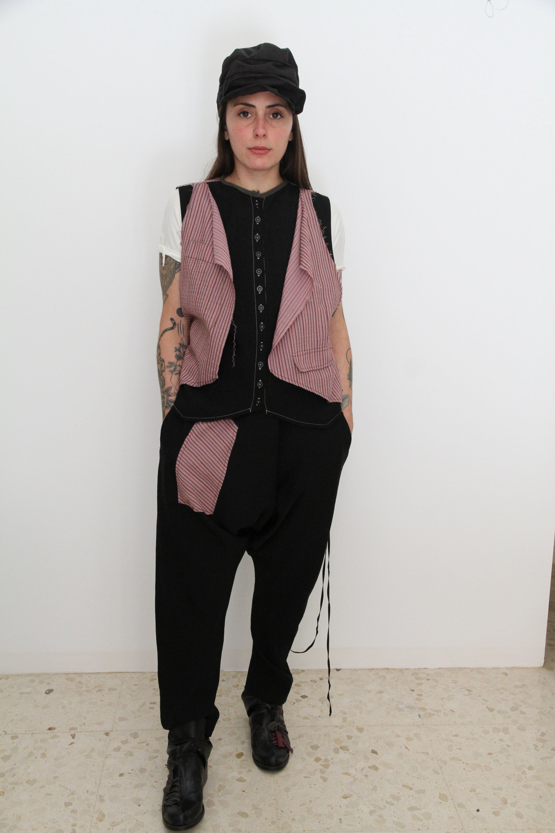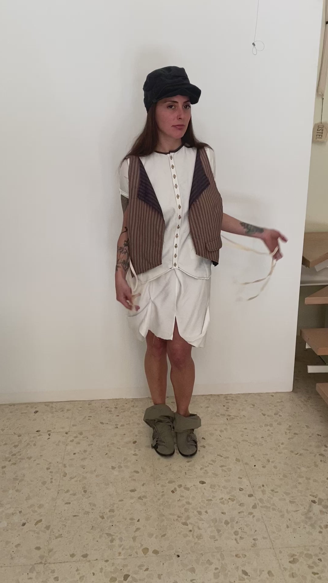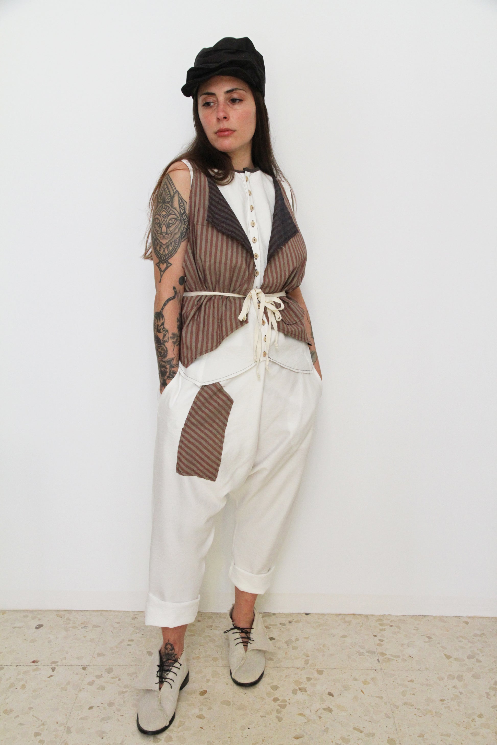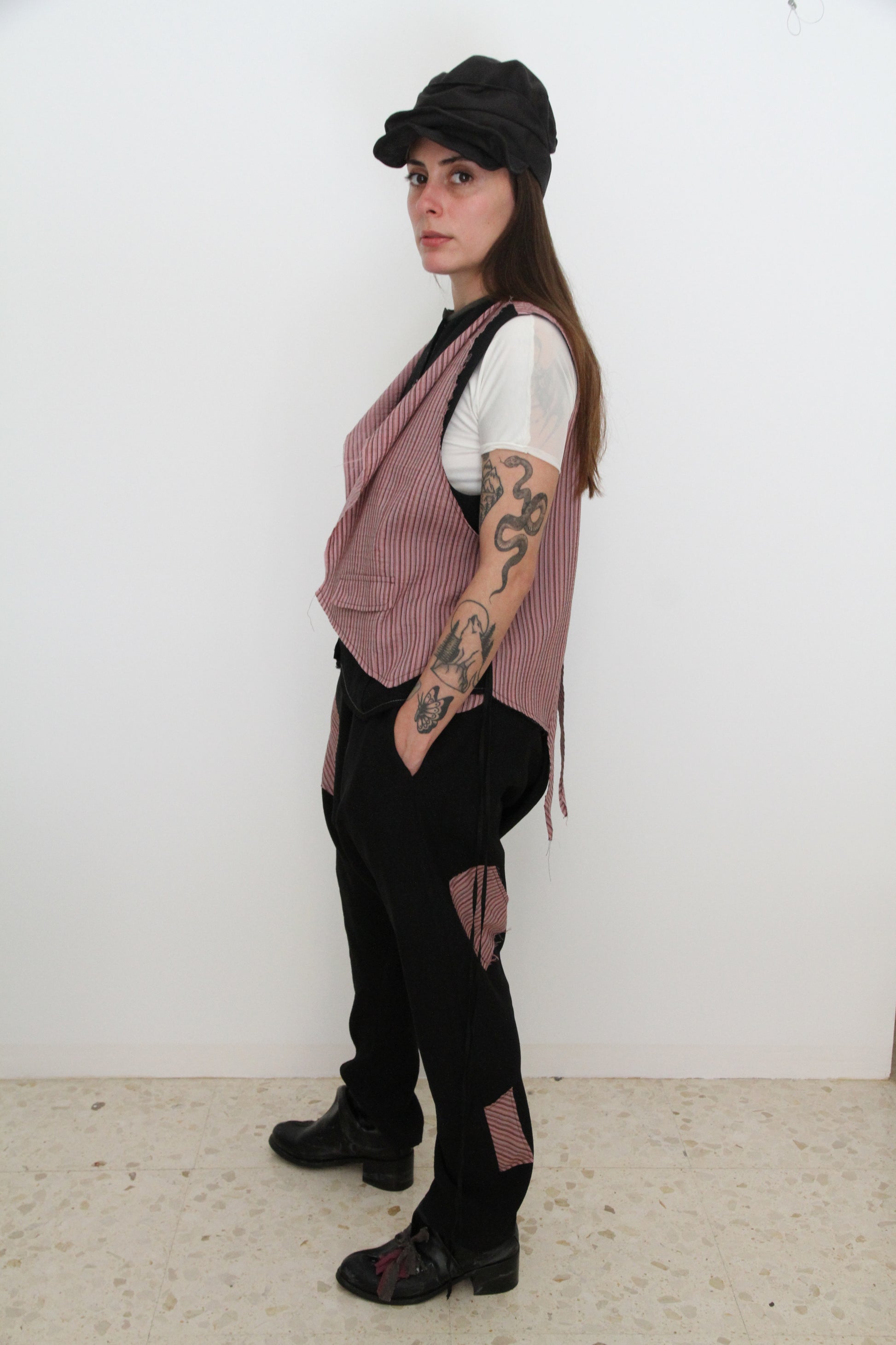 Chaleco con capas y espalda abierta. Unisex. Se fija con cintas en la cintura.