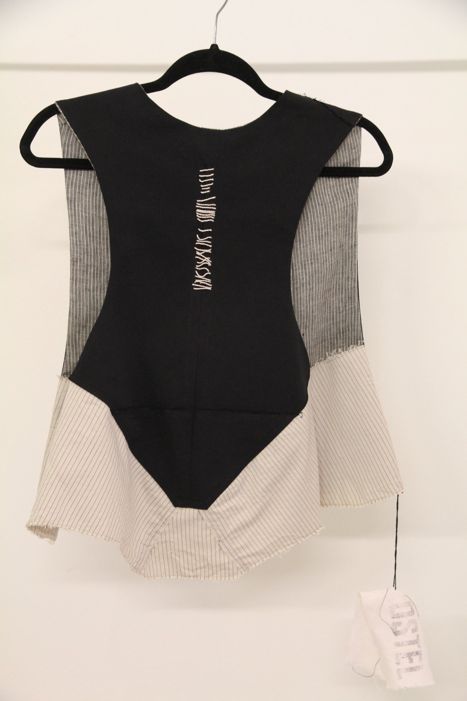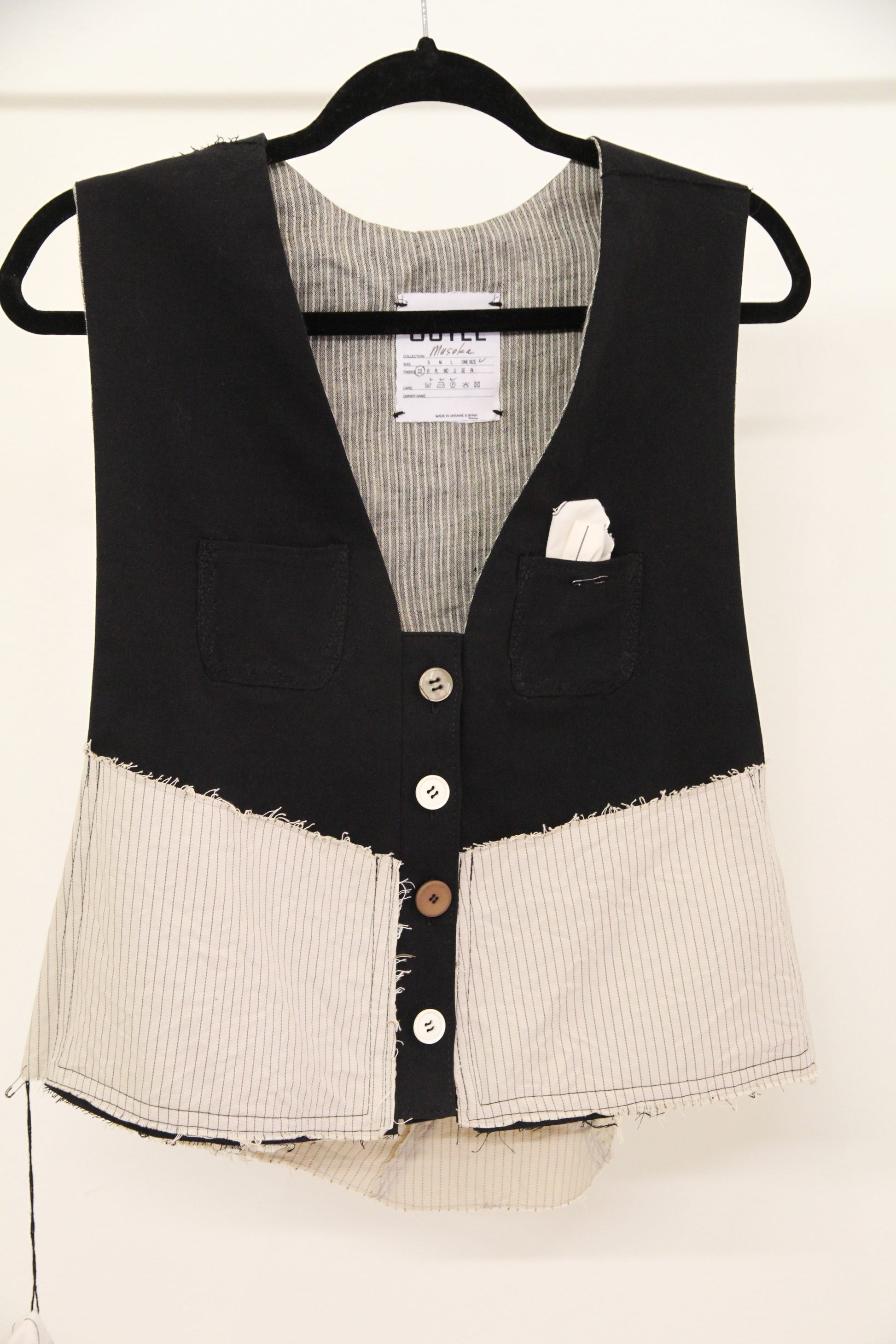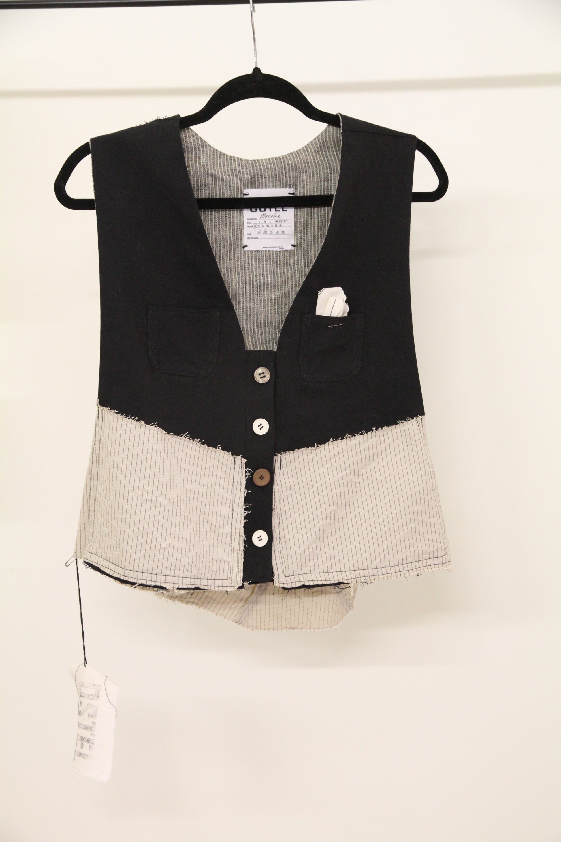Chaleco unisex con dos bolsillos. La espalda está cosida con un cordón color crema.